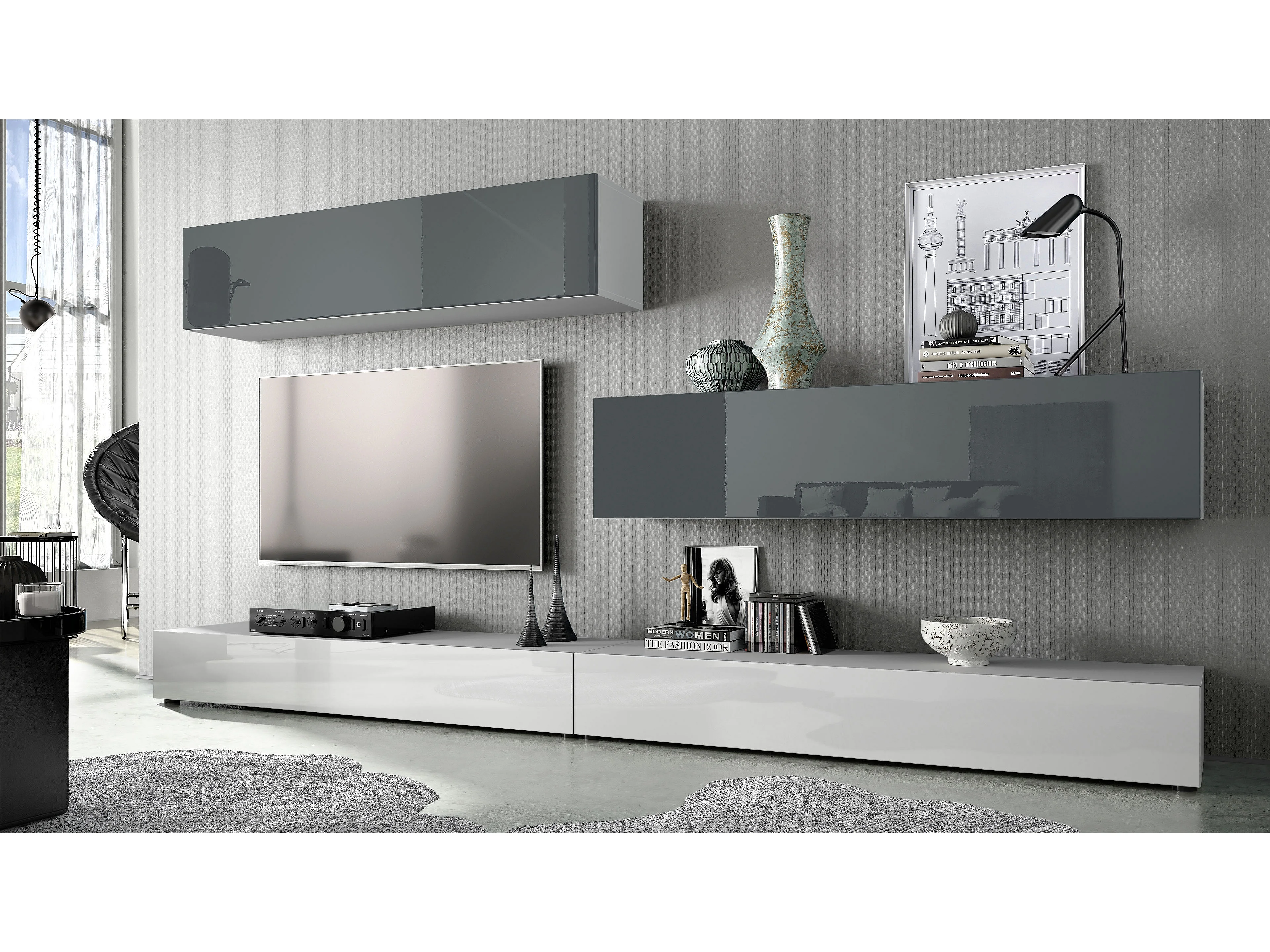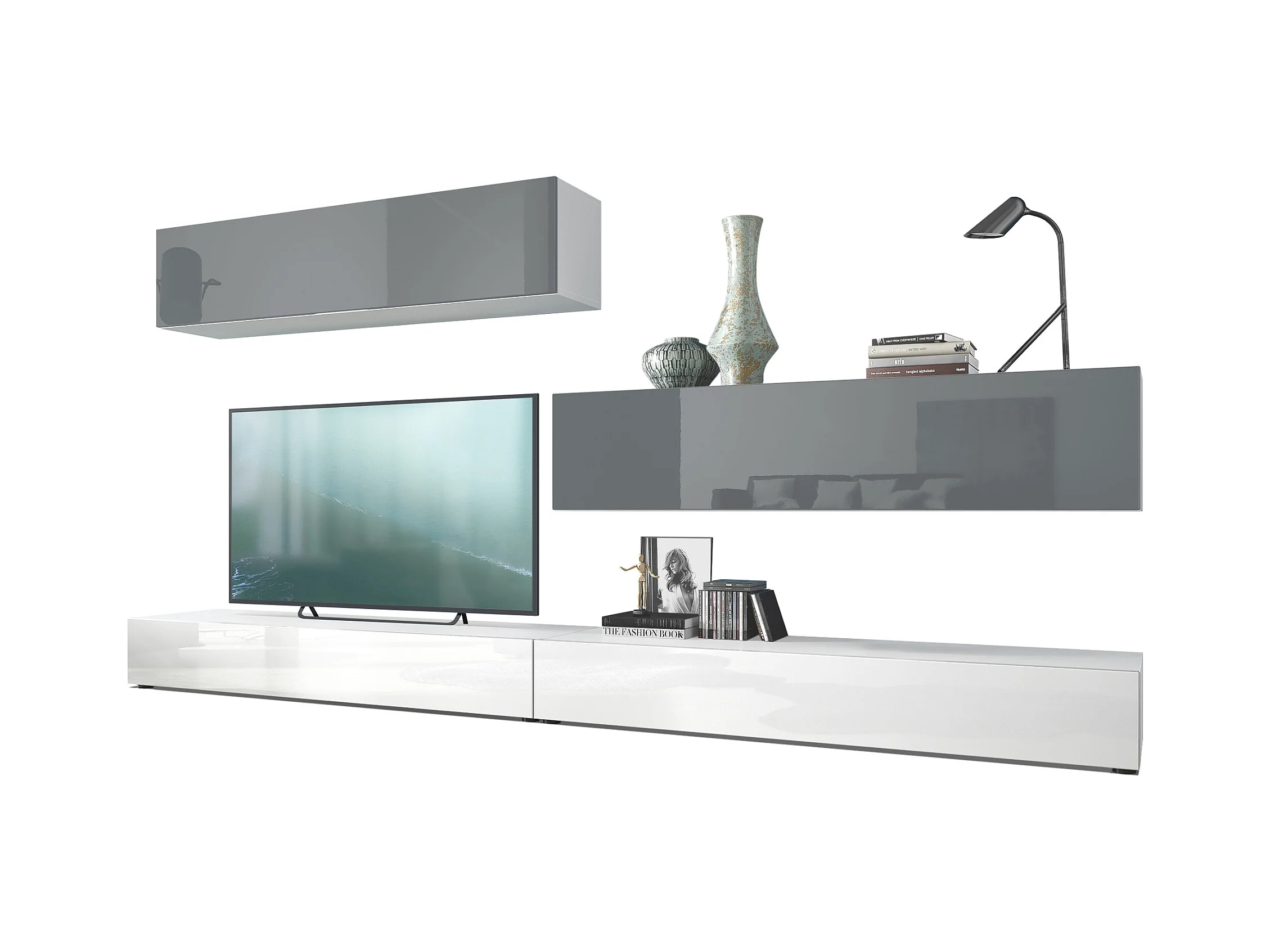 WOHNWAND Nublo Klappen in Grau Hochglanz