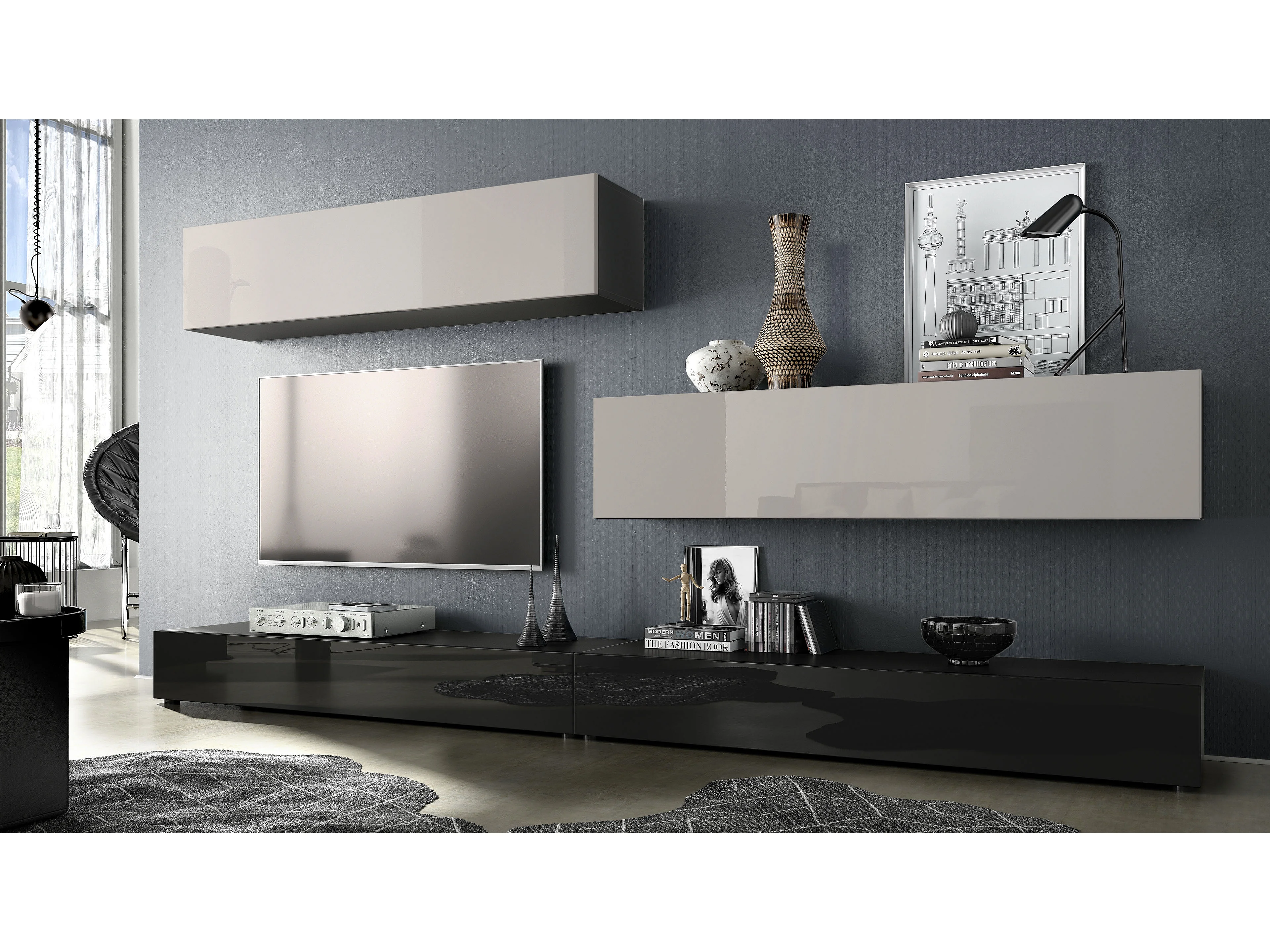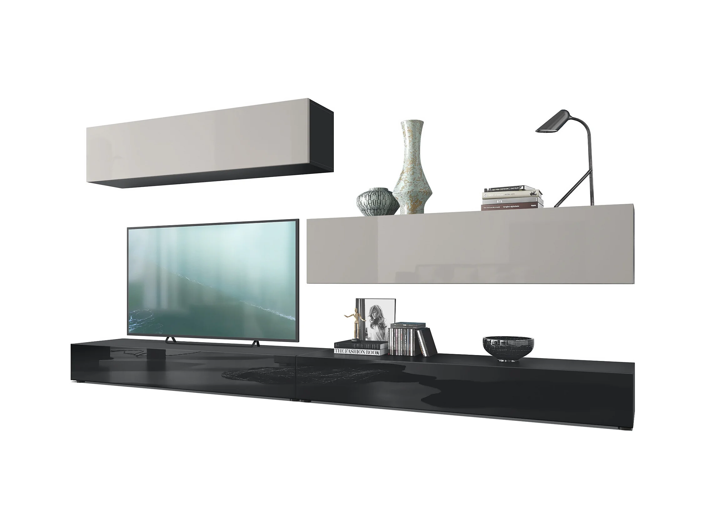 WOHNWAND Nublo Klappen in Sandgrau Hochglanz