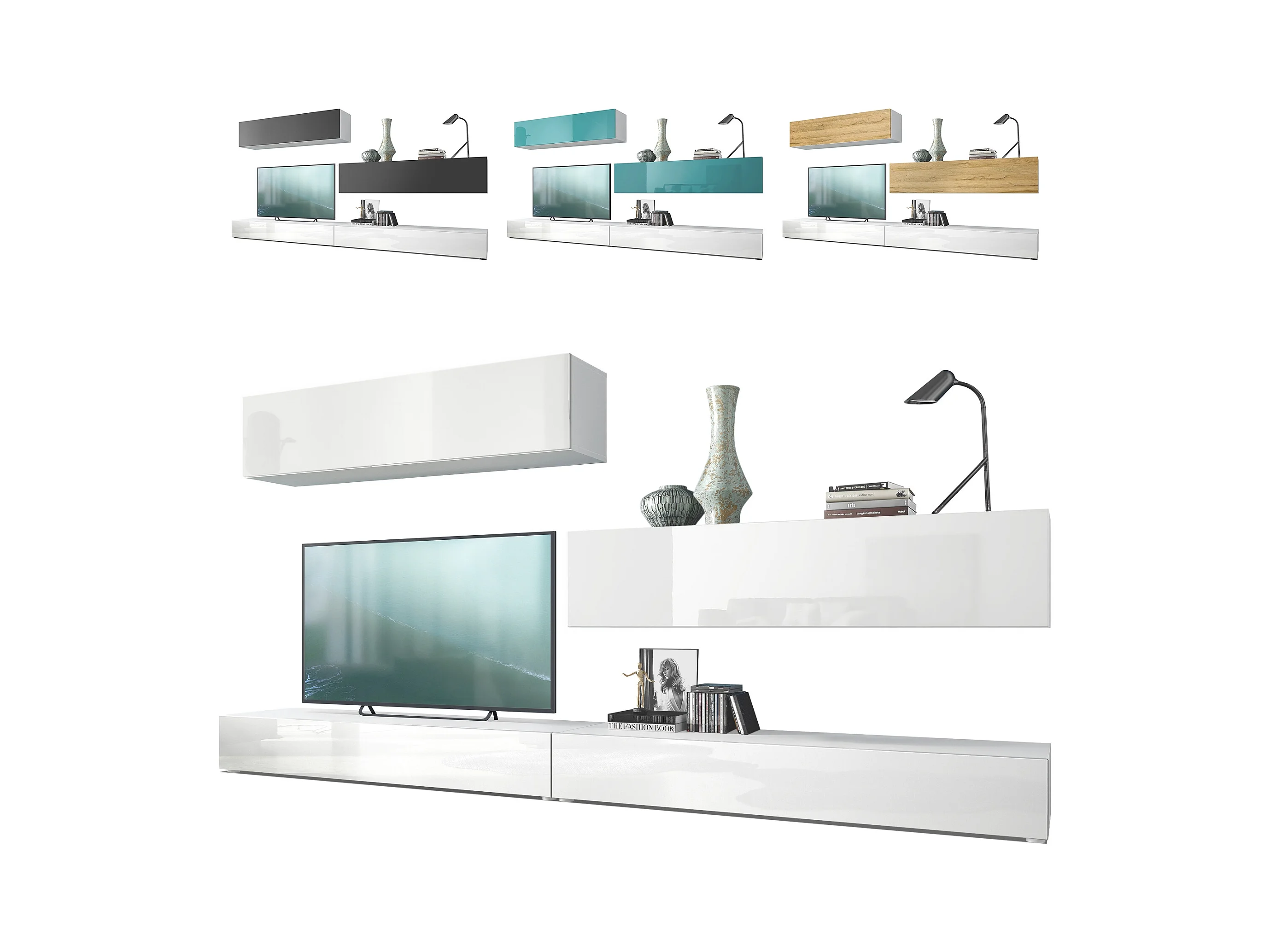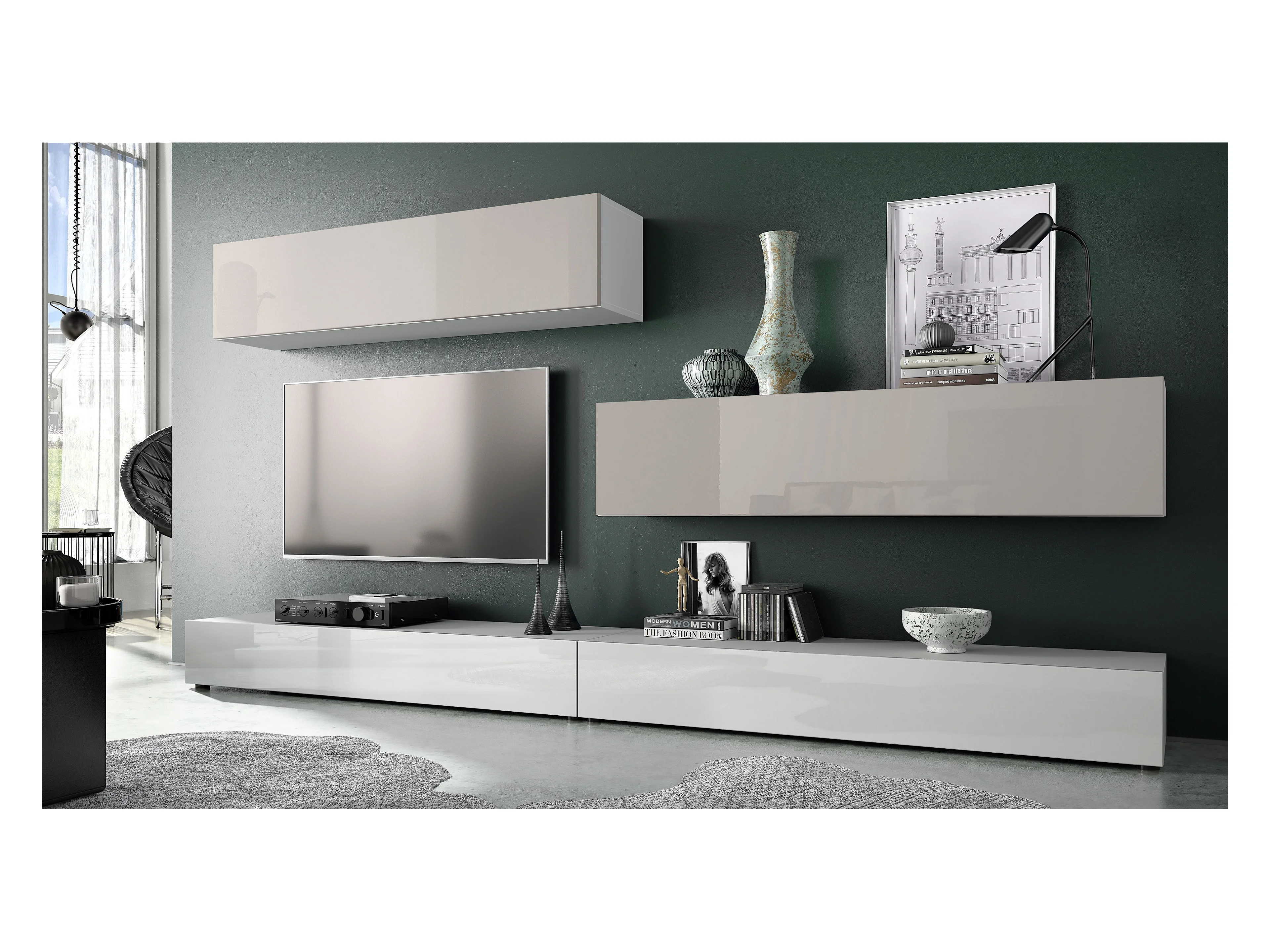 WOHNWAND Nublo Klappen in Sandgrau Hochglanz