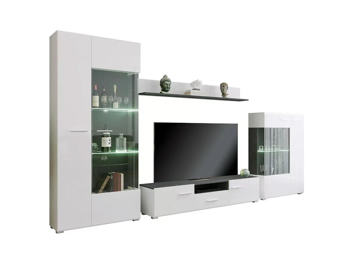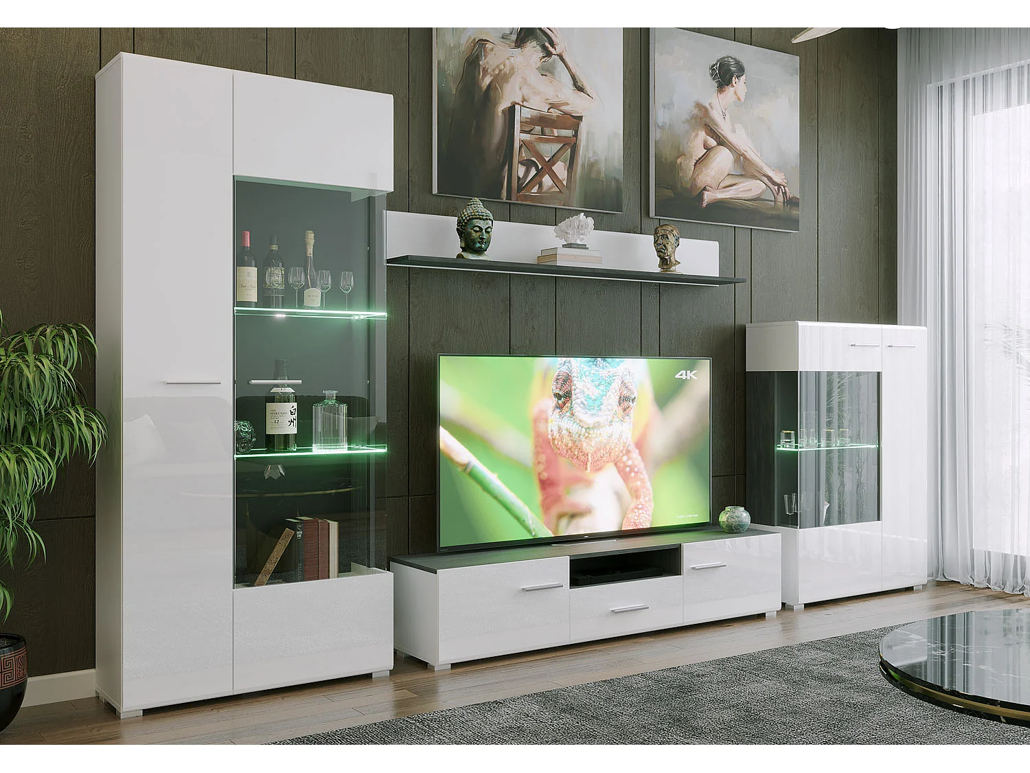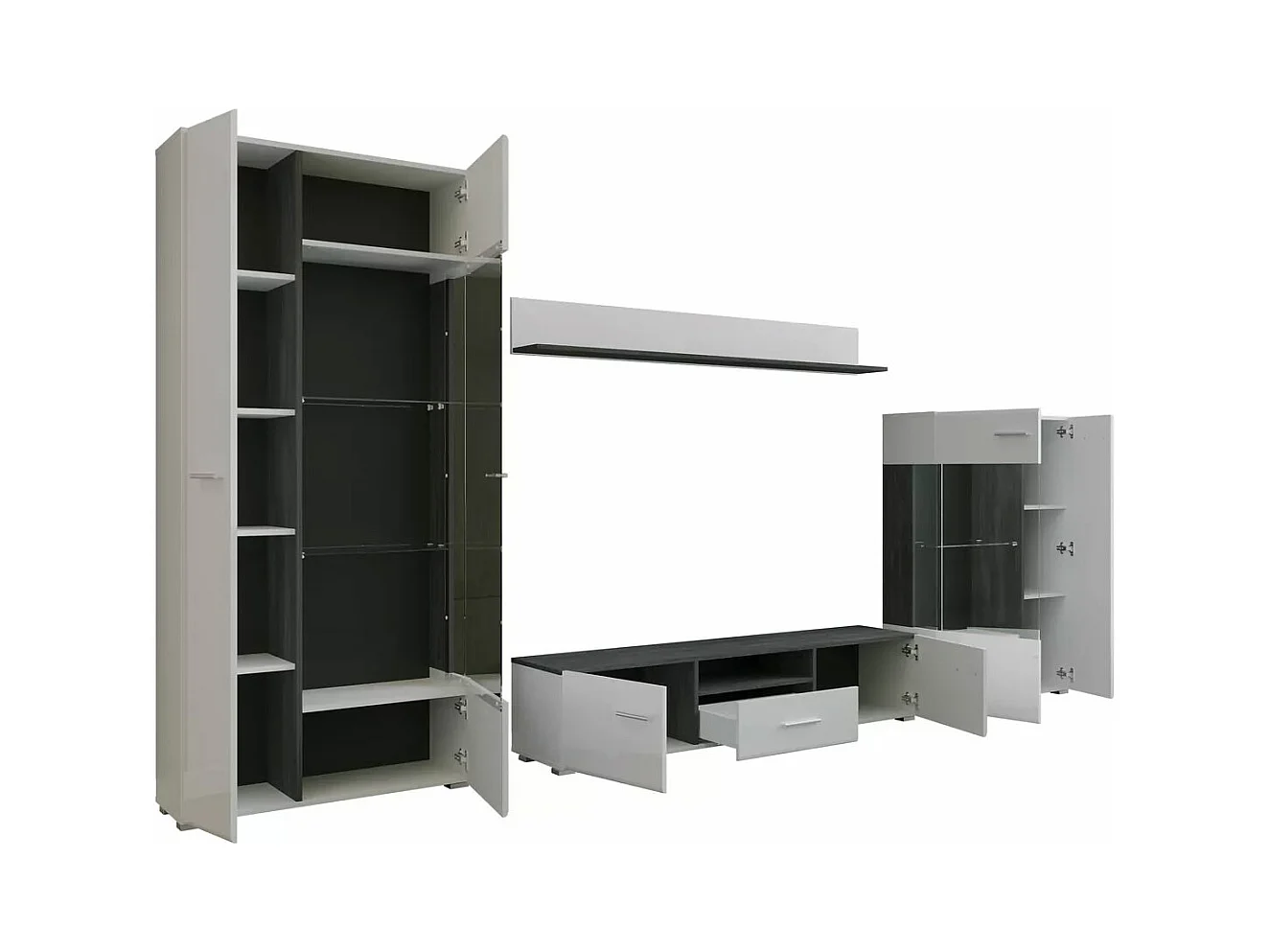 WOHNWAND Rota weiß matt - Norwegische Kiefer / weiß hochglanz 4-teilig