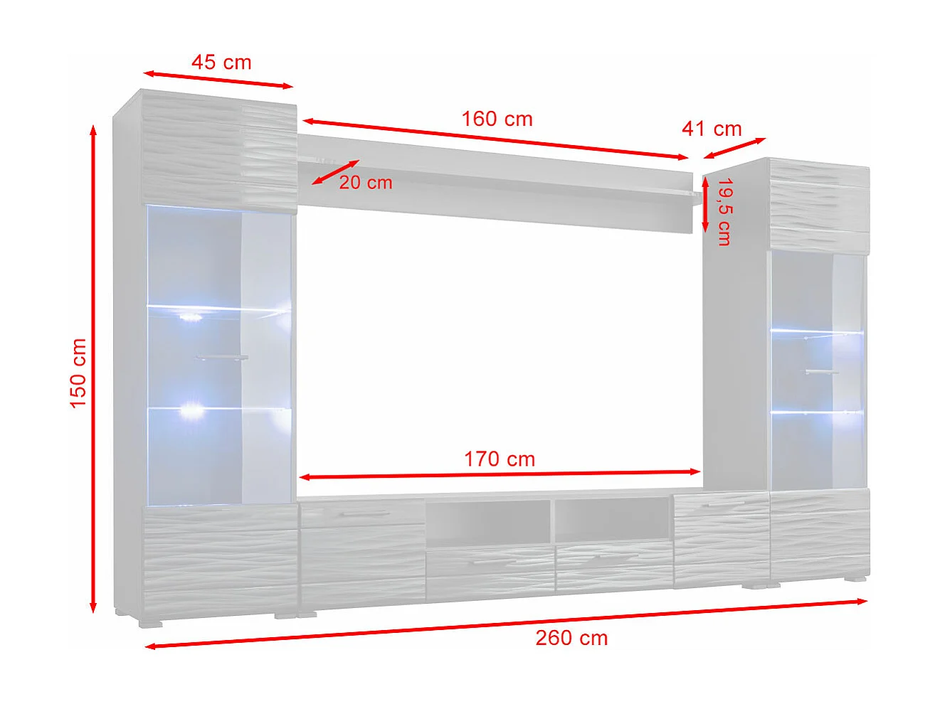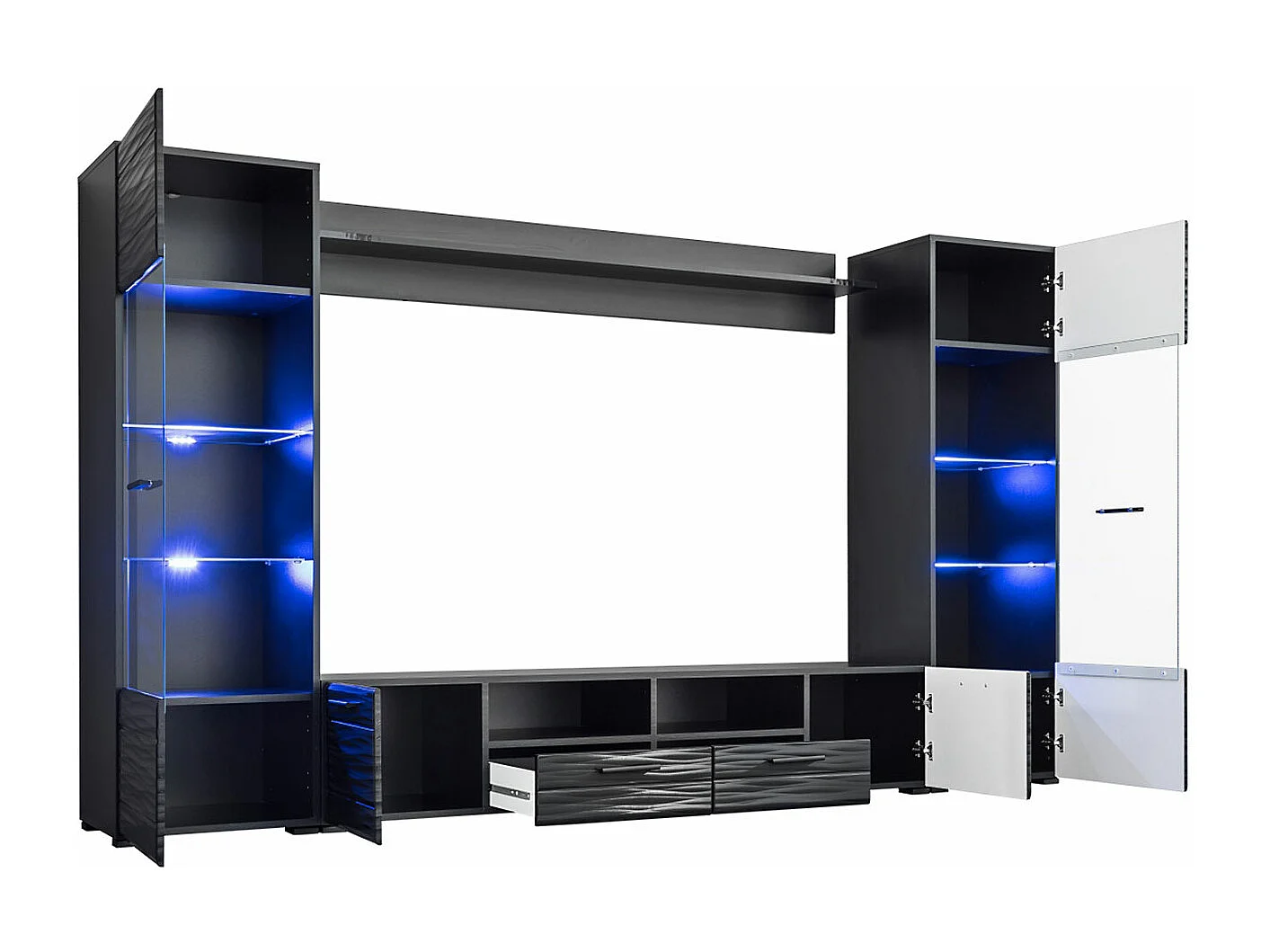 WOHNWAND Soria schwarz matt / Sahara Hochglanz 3D Dekor 4-teilig
