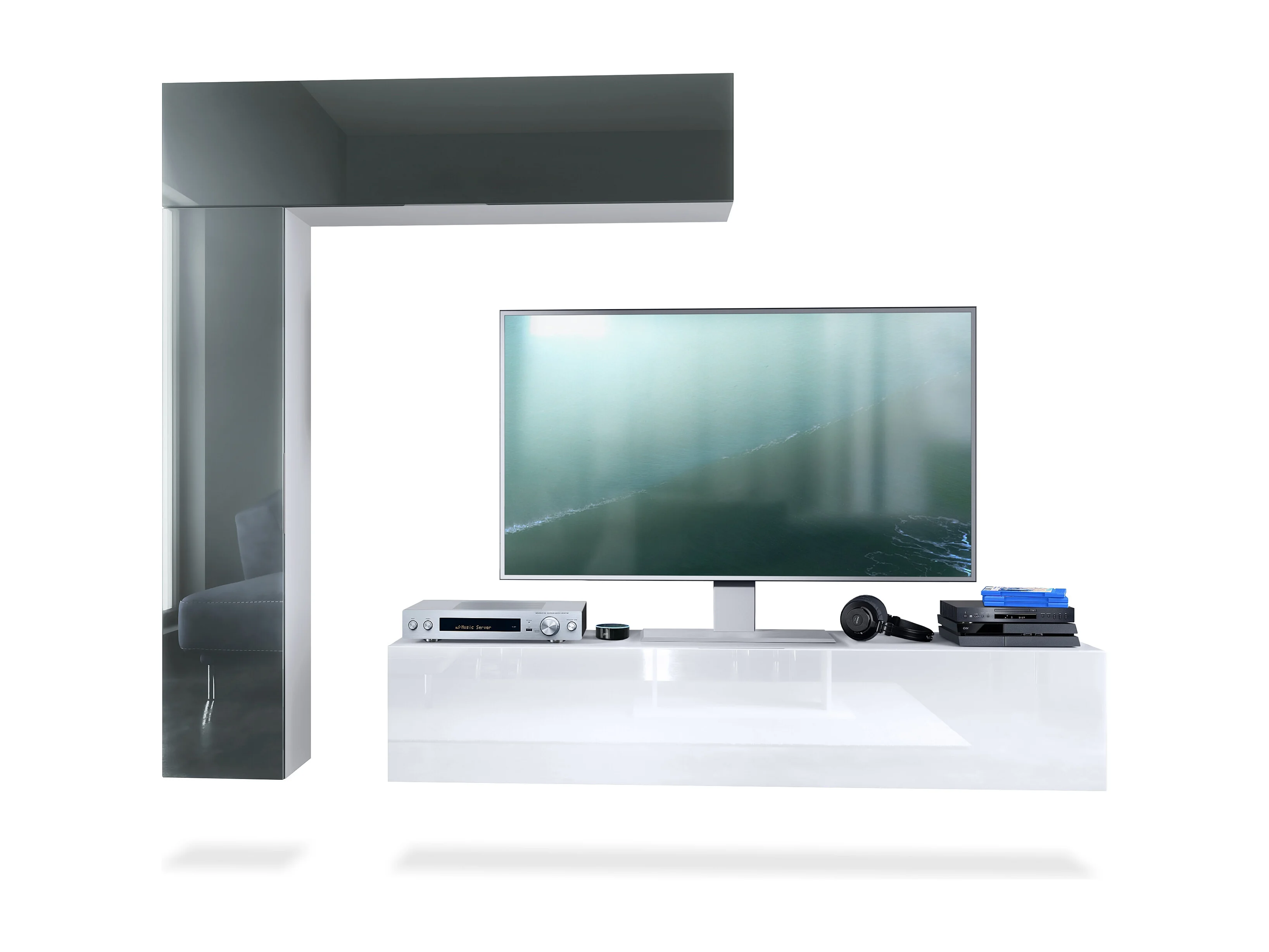 WOHNWAND Taurito Fronten in Grau Hochglanz