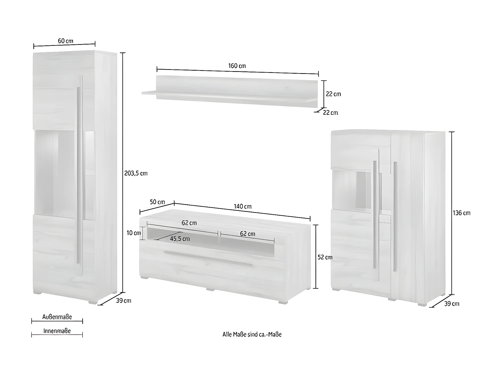 WOHNWAND Tulsa Eiche Grandson 290 cm / 39 - 50 cm / 204 cm