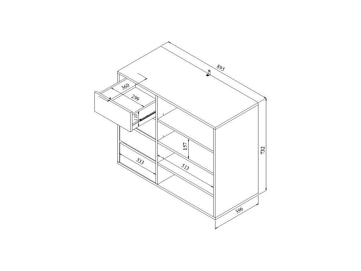 - Schublade: B 33 x T 36 x H 12 cm
