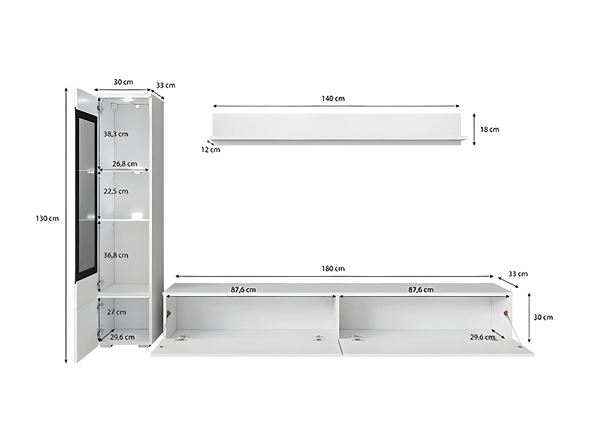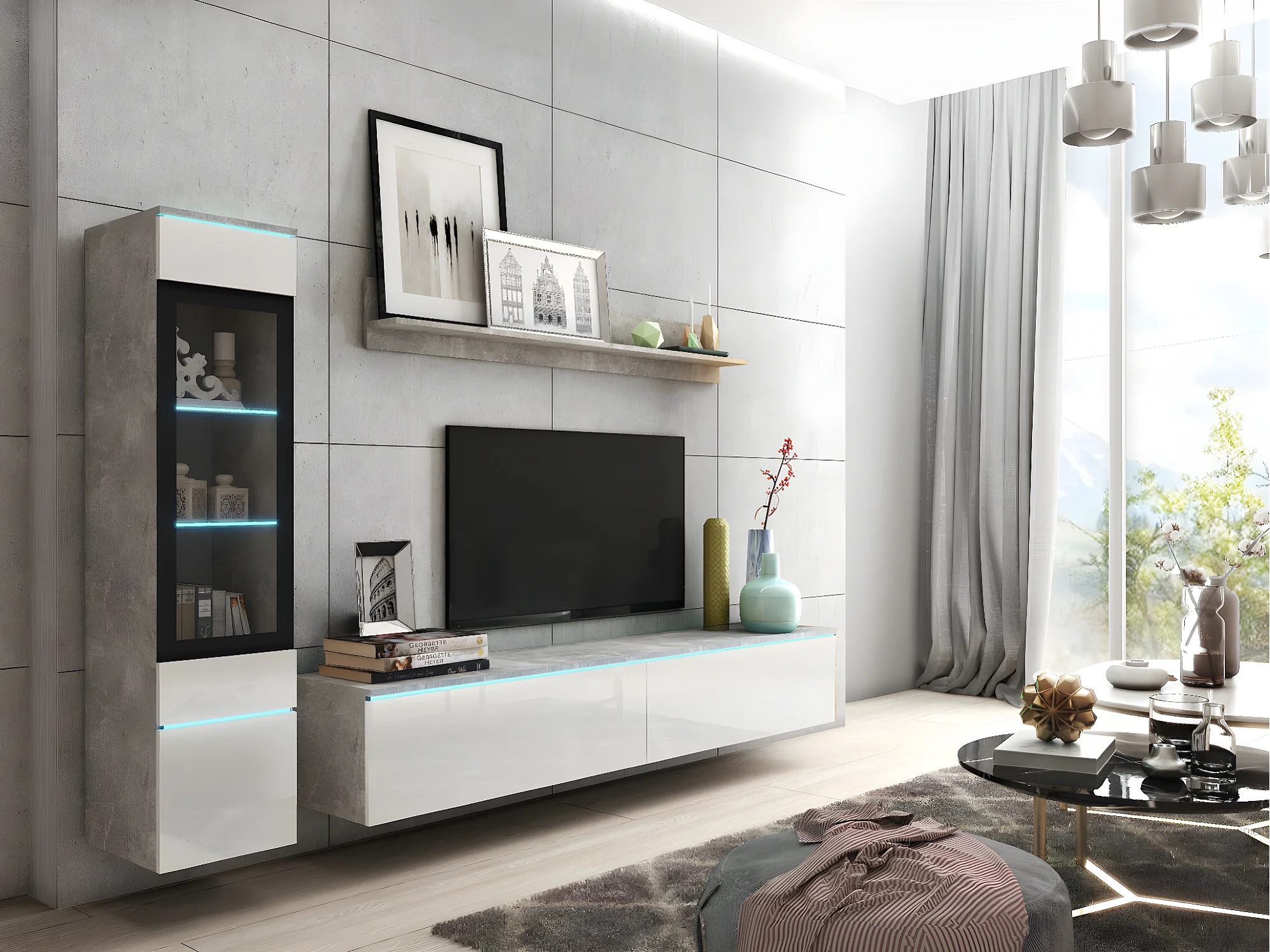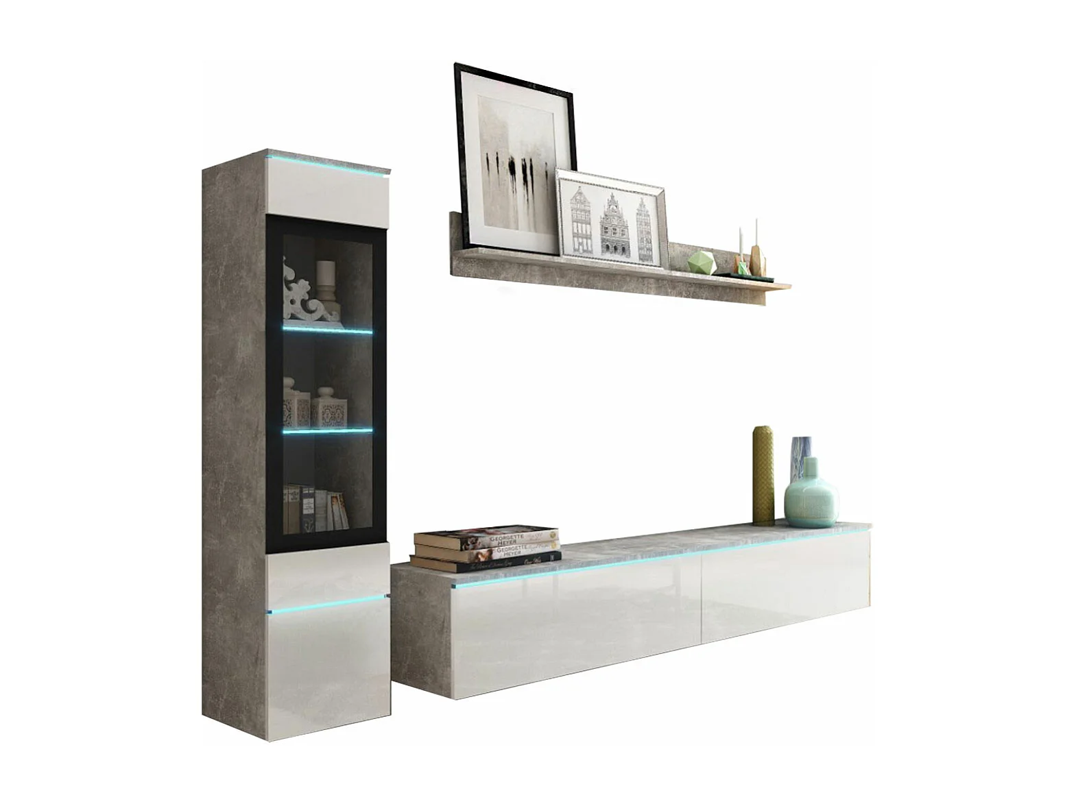 WOHNWAND Vera Beton / weiß Hochglanz 3-teilig