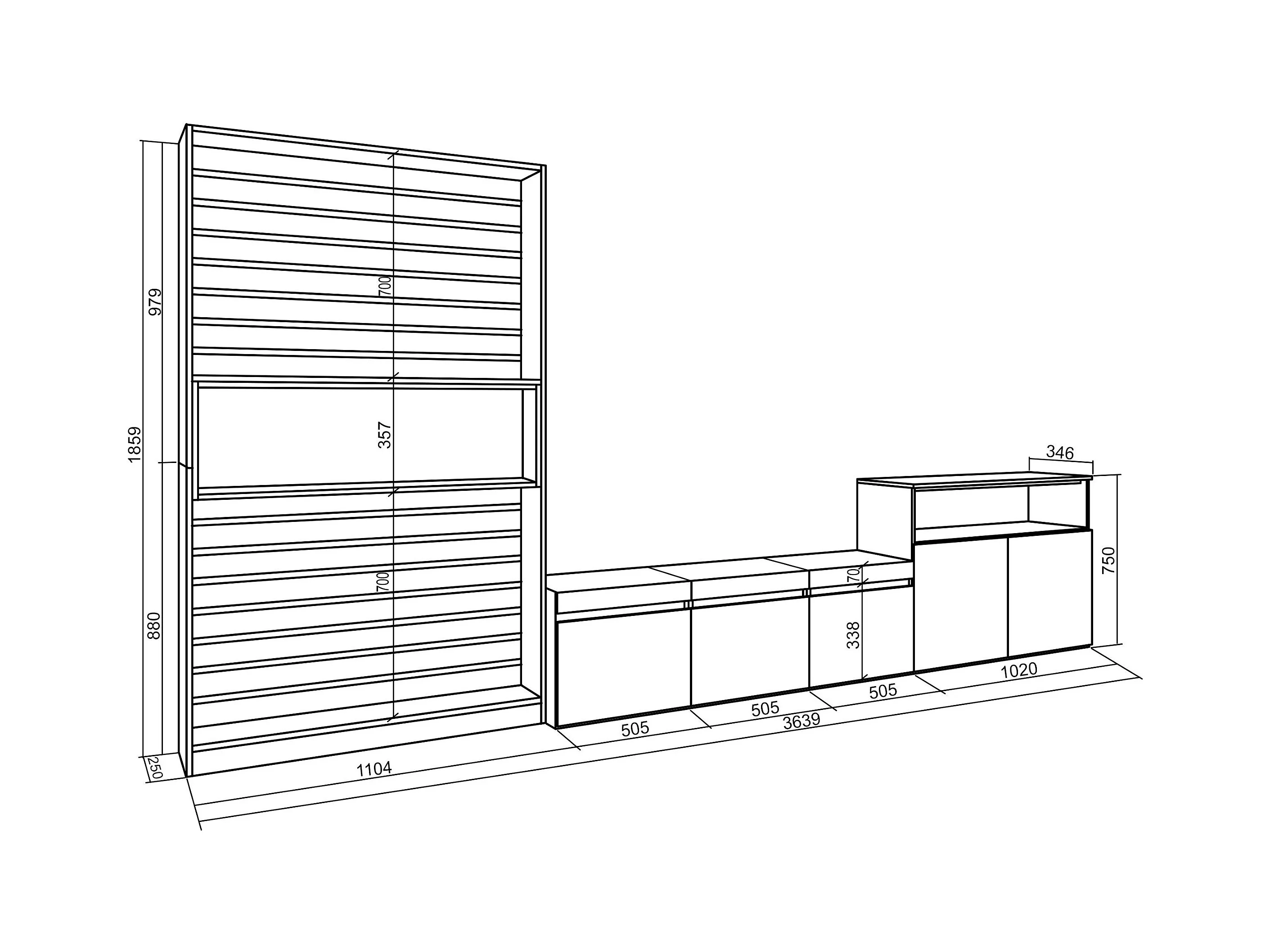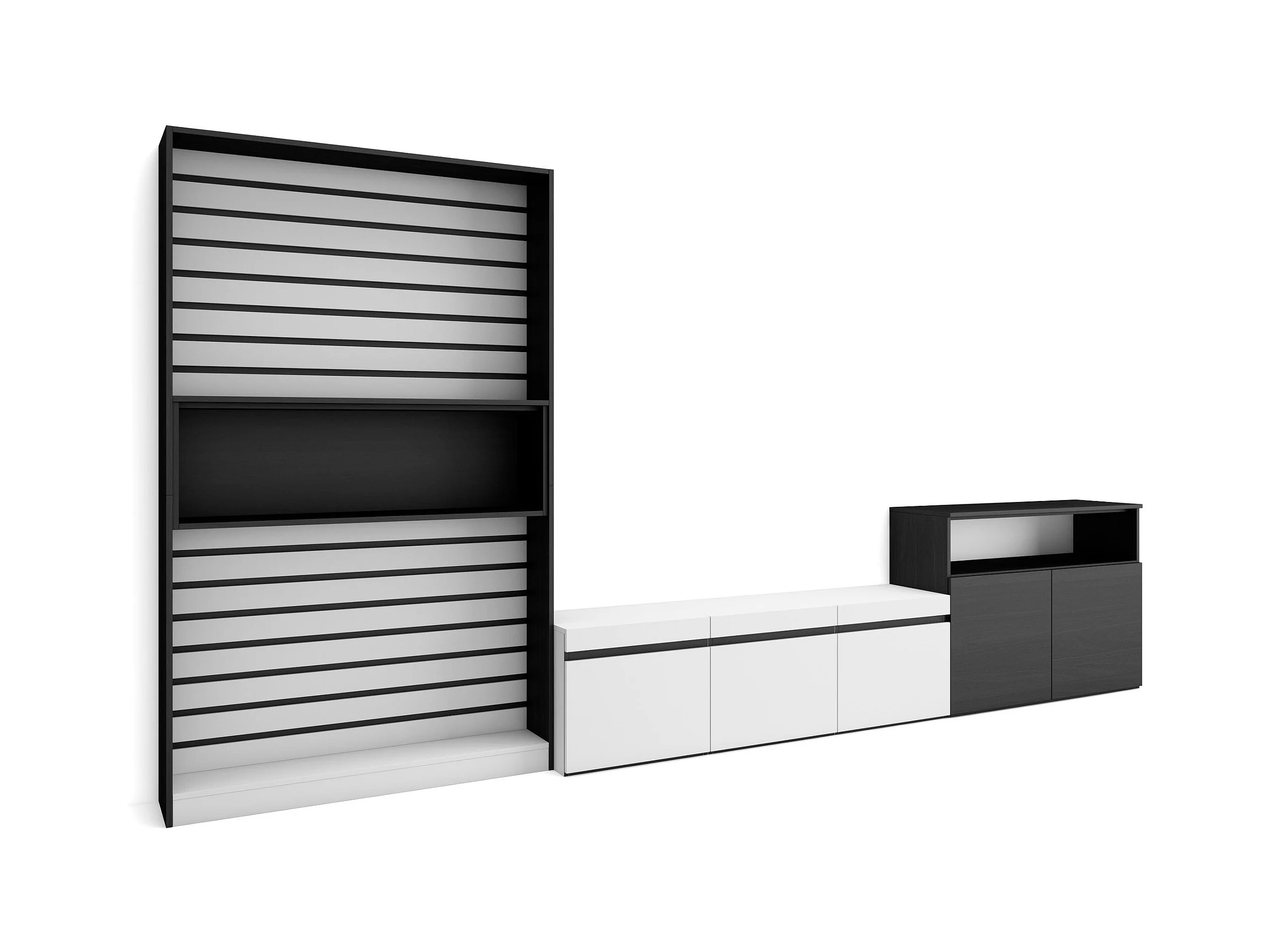 Wohnwand Wohnzimmer, 360x35x186cm, Für TV-Geräte bis zu 65", Wohnzimmer Möbel , Weiß und Schwarz