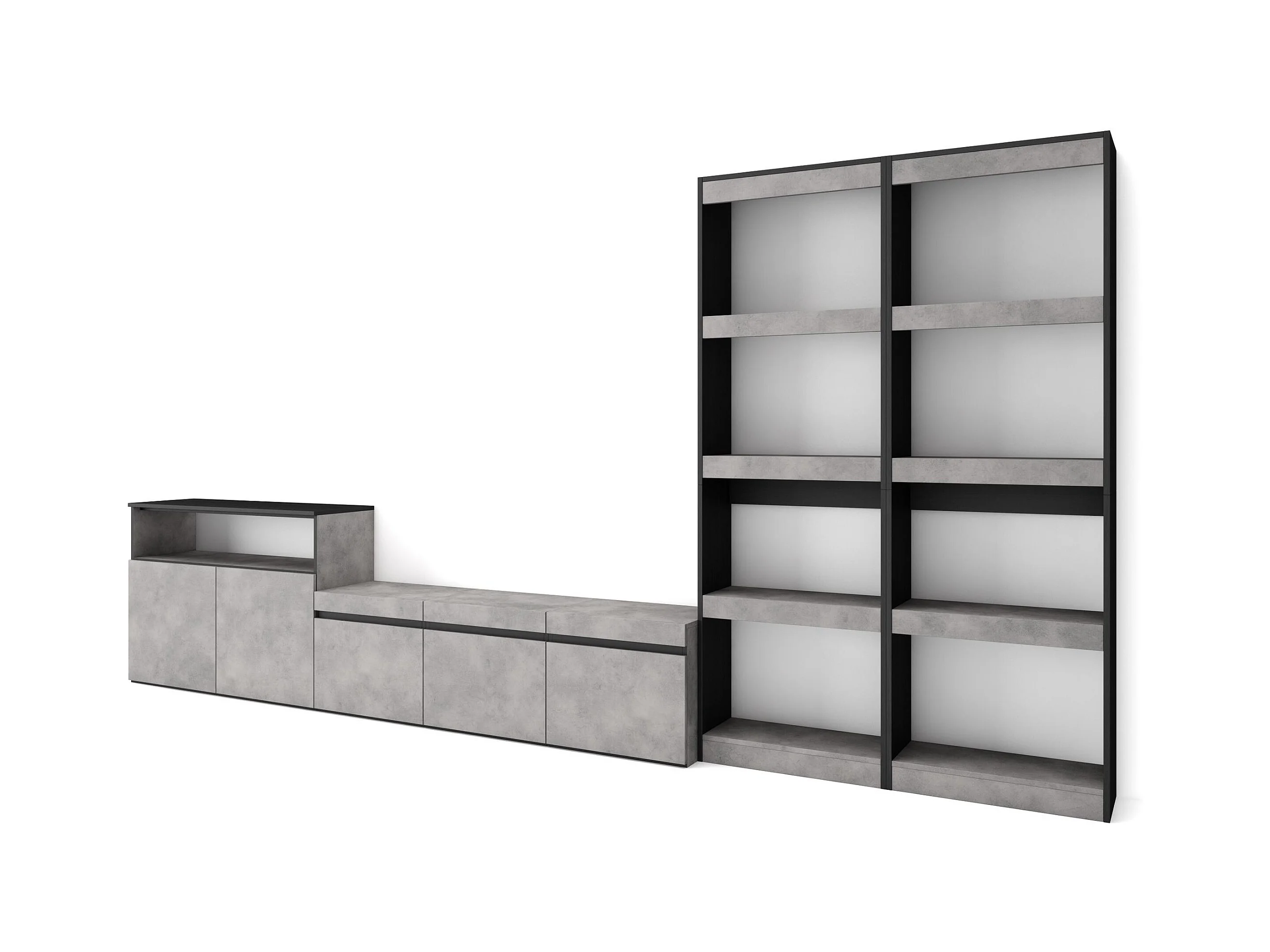 Wohnwand Wohnzimmer, 370x35x186cm, Für TV-Geräte bis zu 65", Wohnzimmer Möbel , Zement