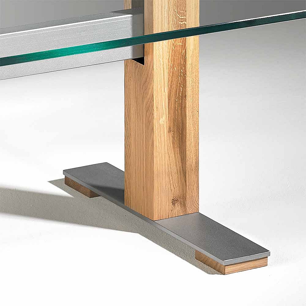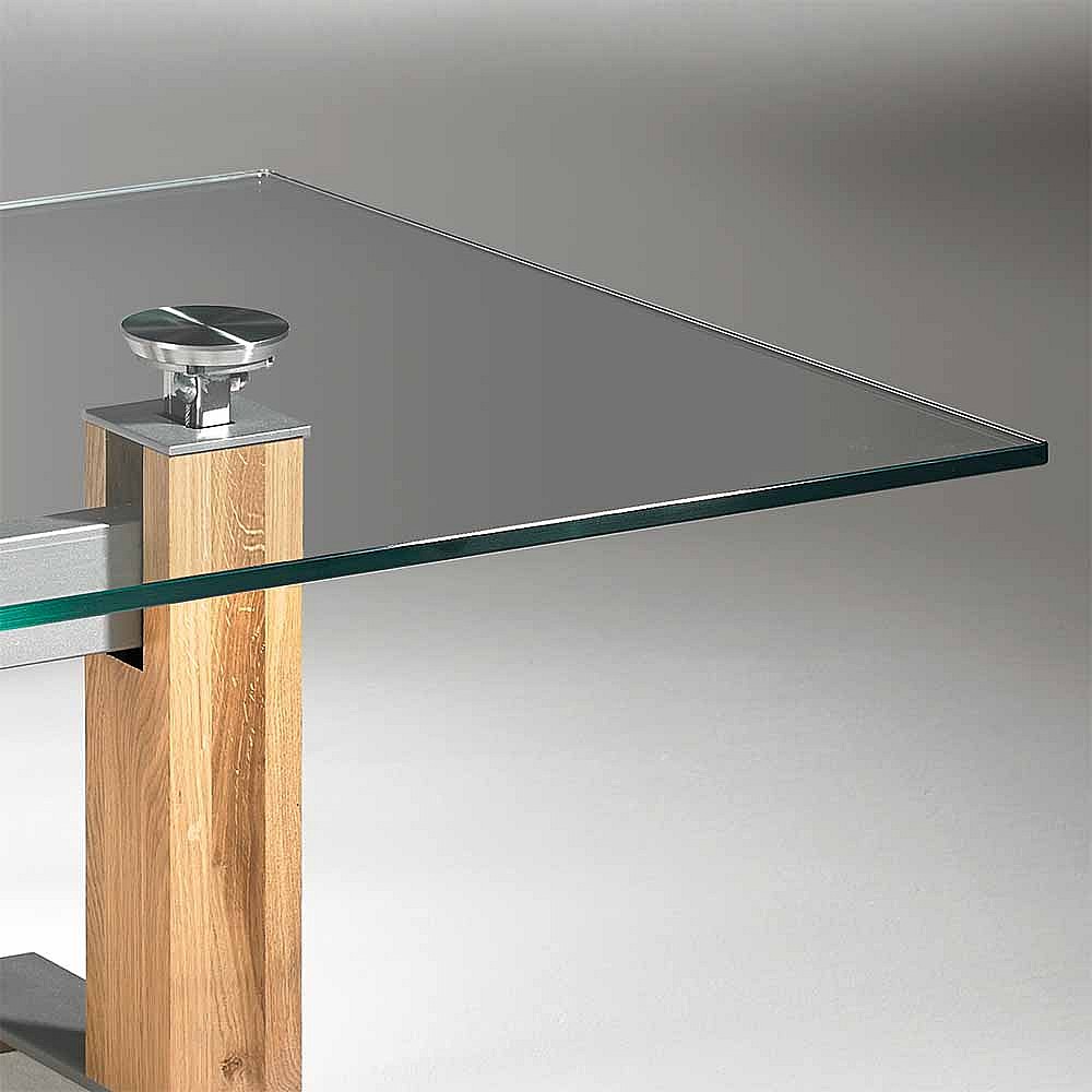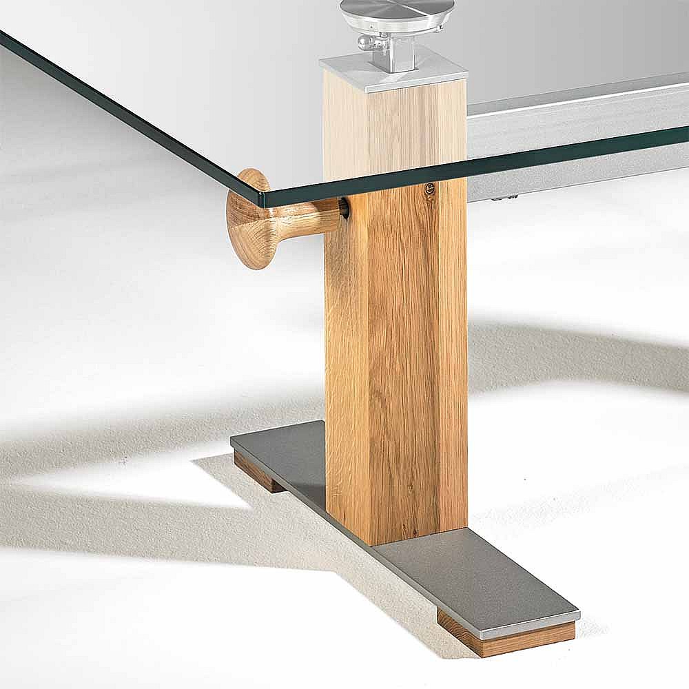 Wohnzimmer Couchtisch aus Glas Eiche massiv