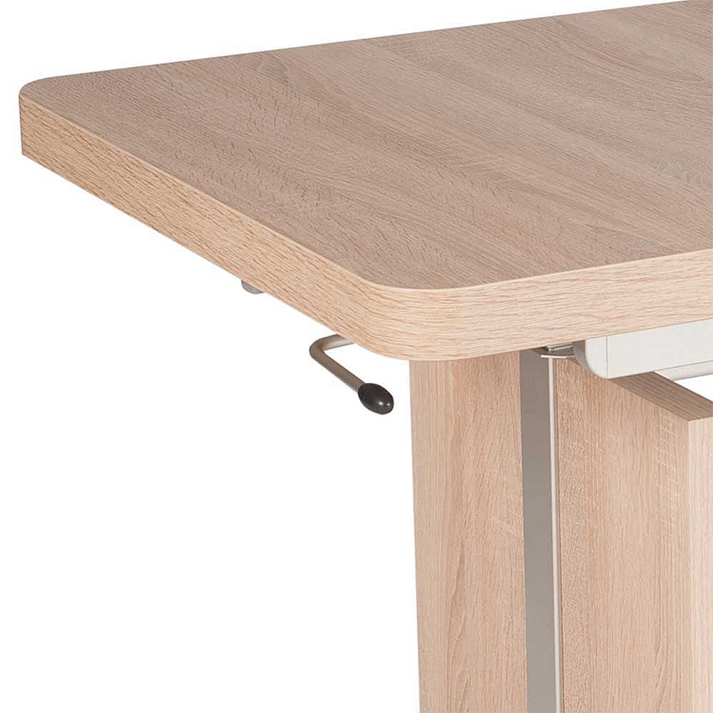 Wohnzimmer Couchtisch in Eiche Sägerau höhenverstellbar und ausziehbar