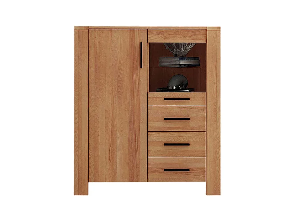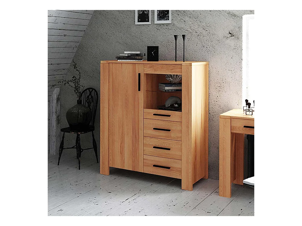 Wohnzimmer Highboard aus Kernbuche Massivholz mit Glastür