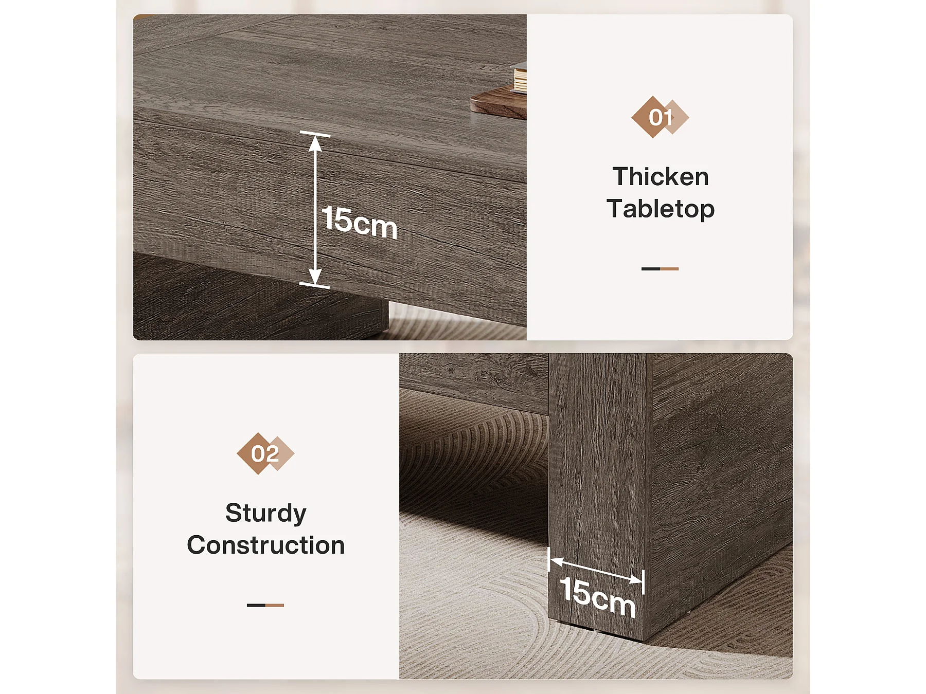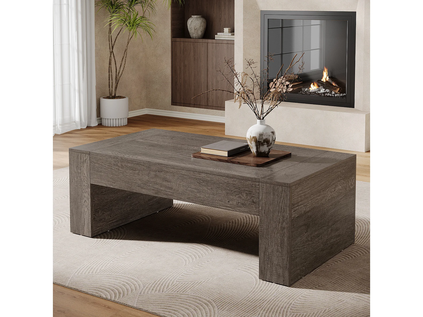 Wohnzimmer rechteckiger Couchtisch, 130 cm Landhaus-Akzent-Zentercocktail-Tee-Tisch mit stabiler Basis, rustikales Taupe