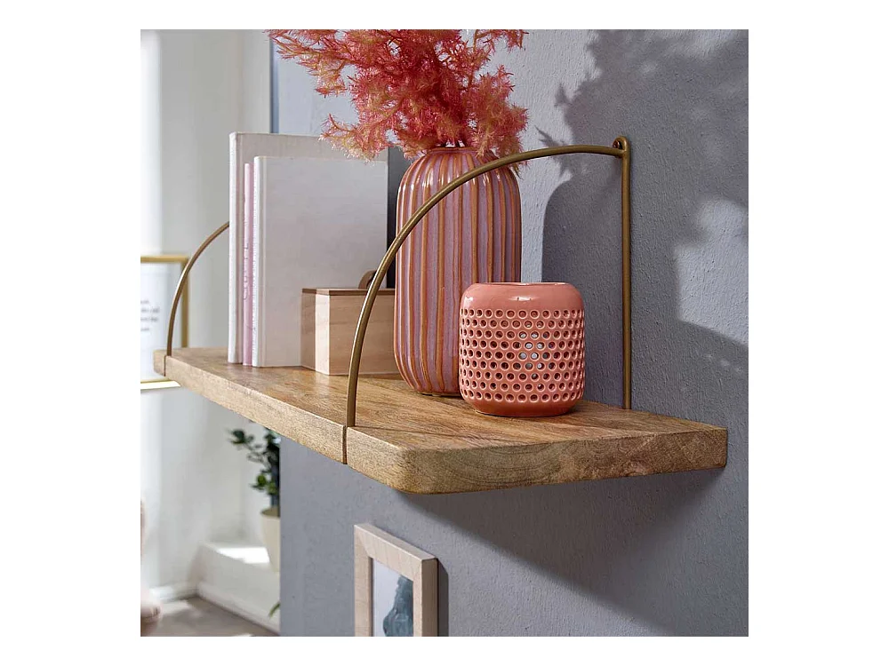 Wohnzimmer Regal in Messingfarben Mangobaum