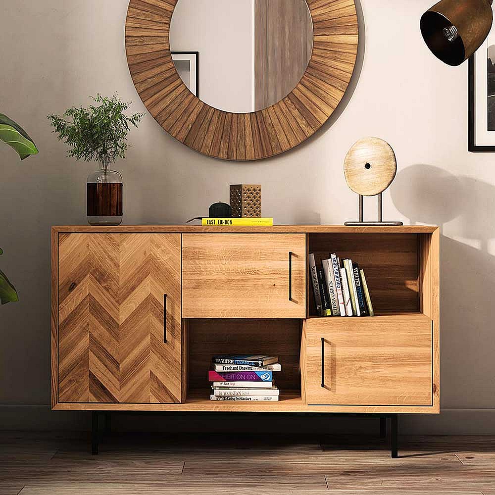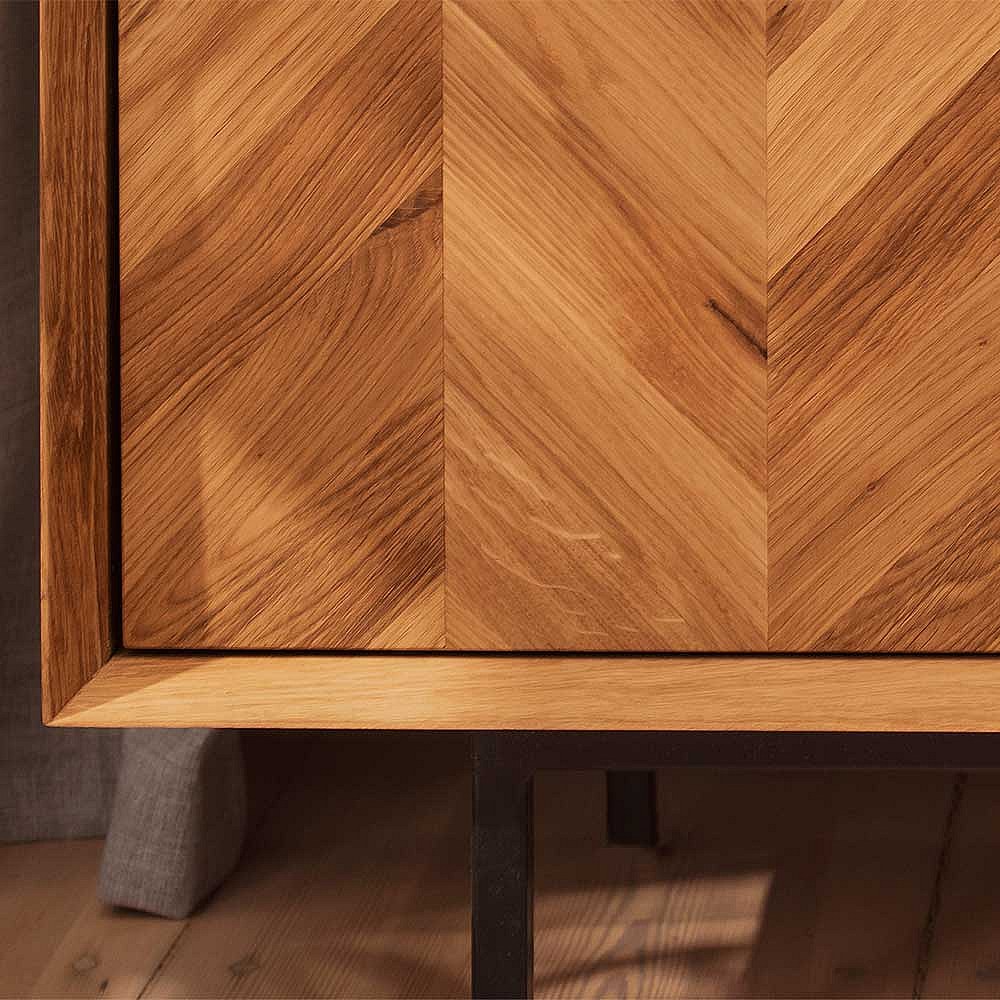 Wohnzimmer Schrank aus Wildeiche Massivholz Vierfu�gestell aus Metall