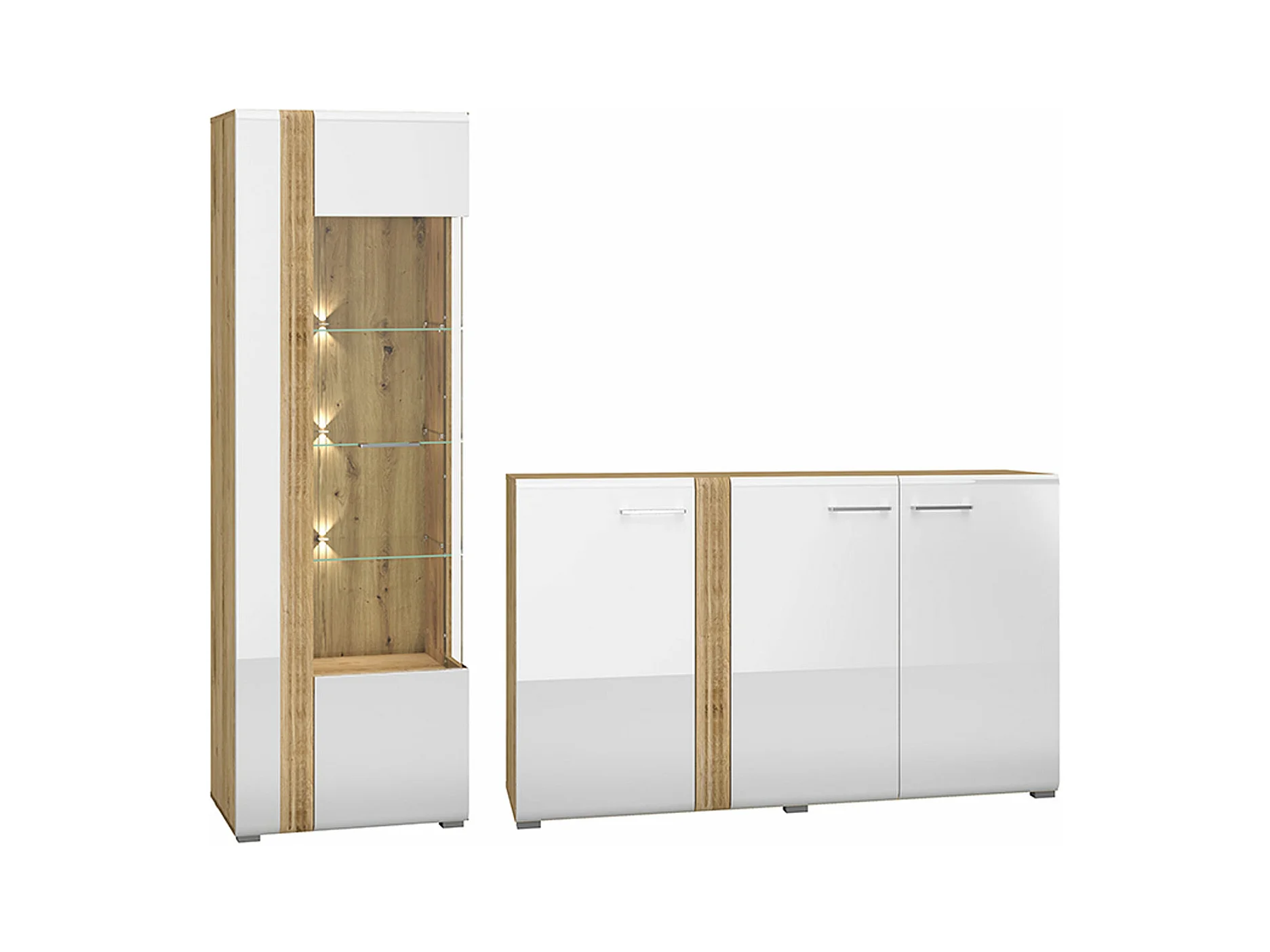 WOHNZIMMER-SET Adagio weiß Hochglanz / Eiche castello 2-teilig