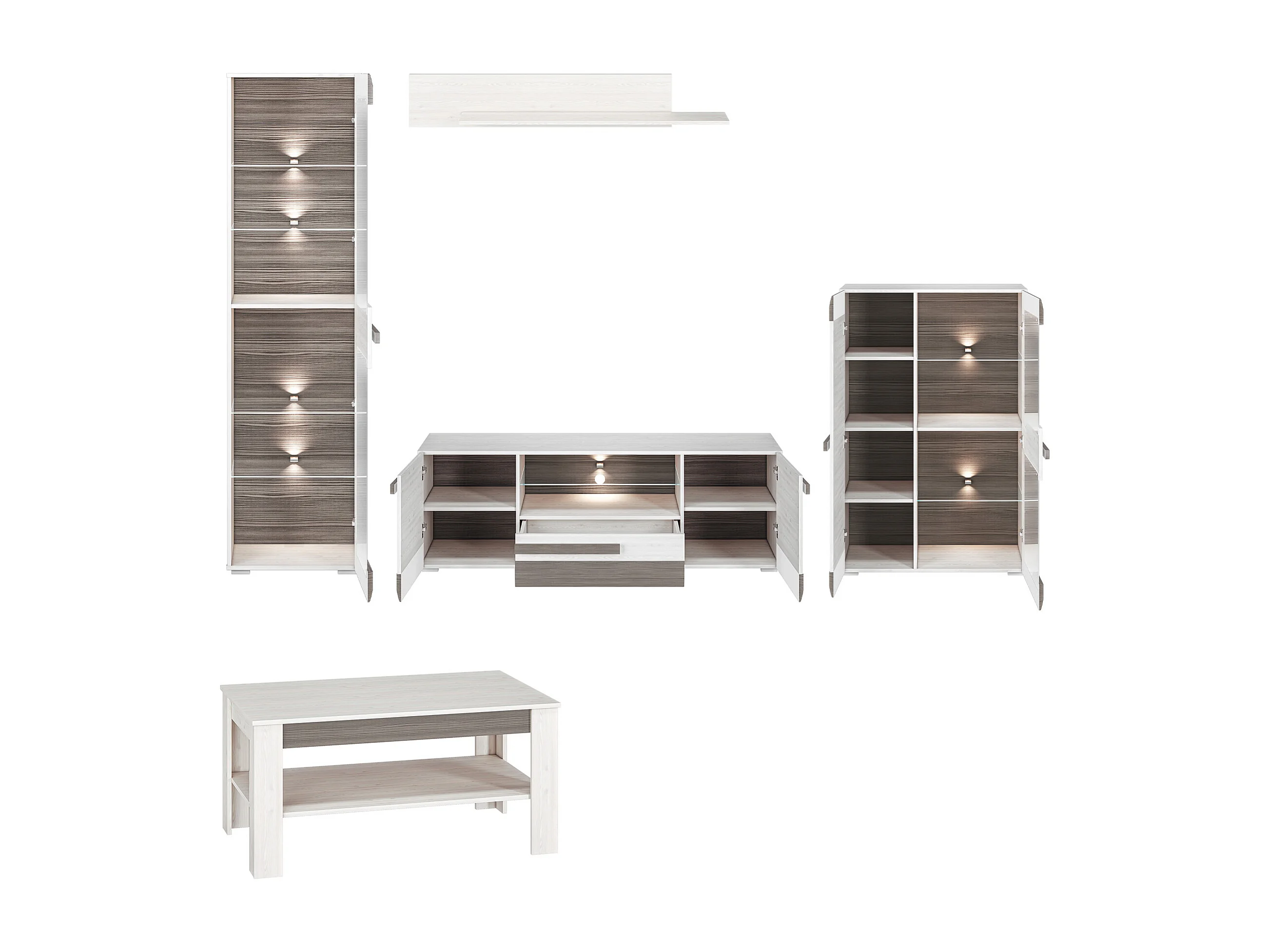 WOHNZIMMER-SET Blanco Pinie weiß / grau 5-teilig