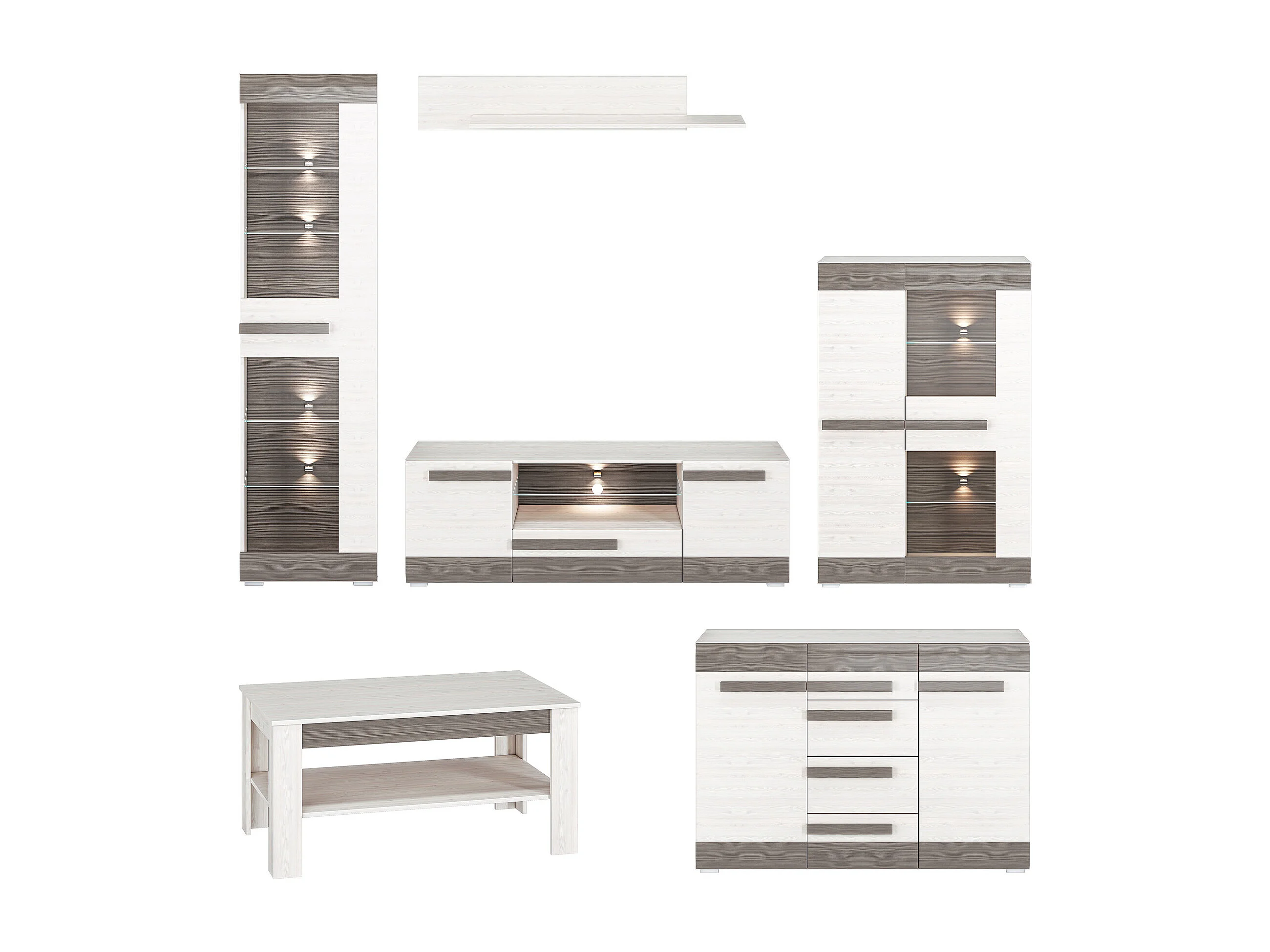 WOHNZIMMER-SET Blanco Pinie weiß / grau 6-teilig