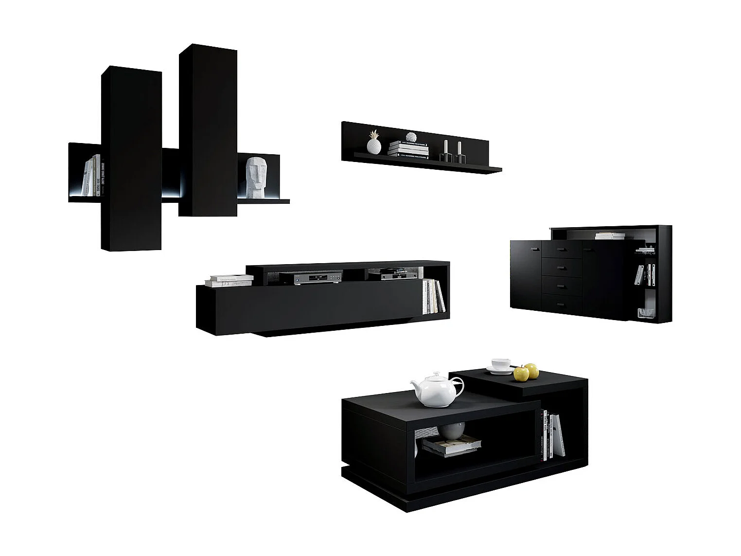 WOHNZIMMER-SET Bota schwarz matt 821x60x142cm