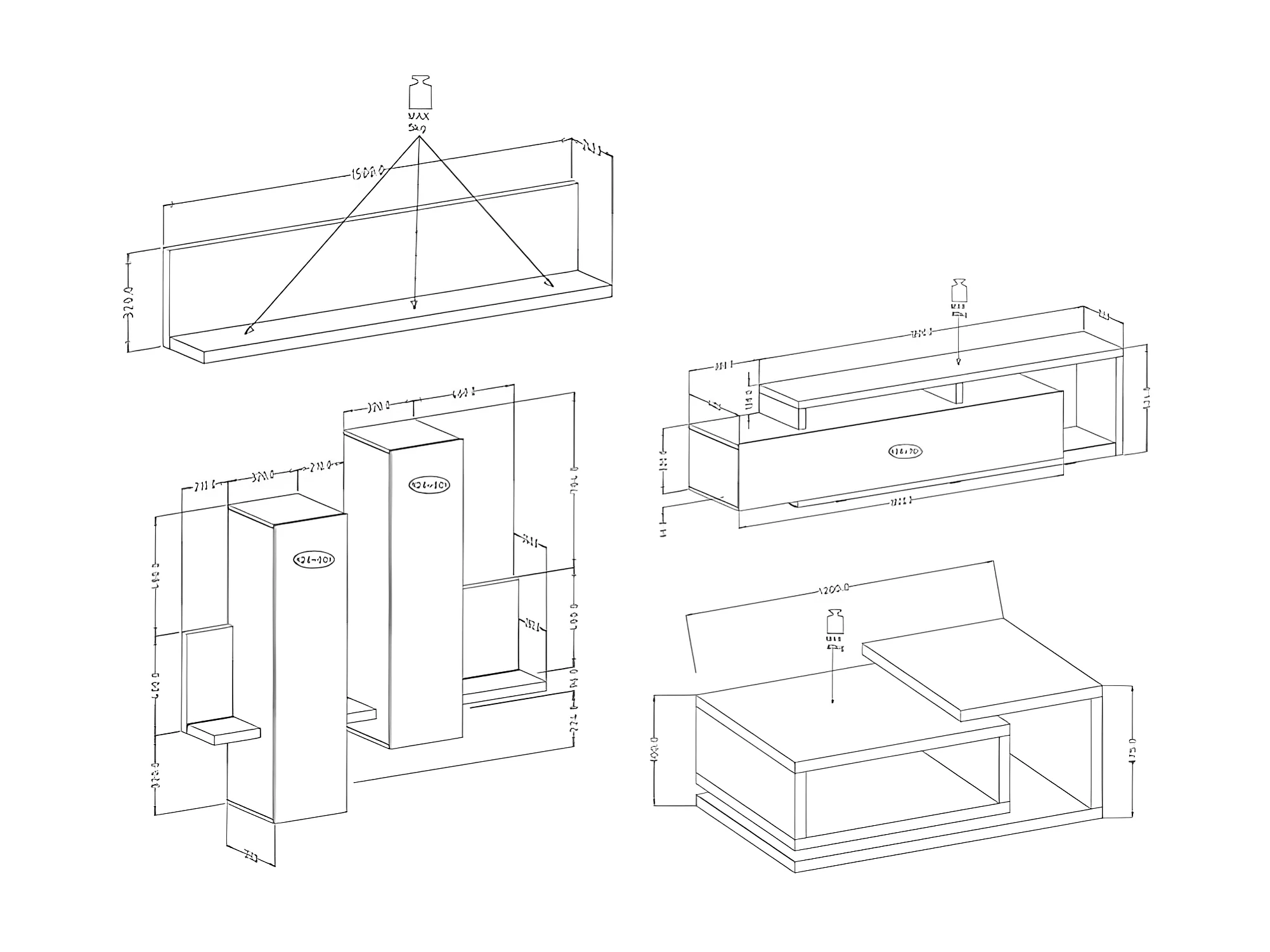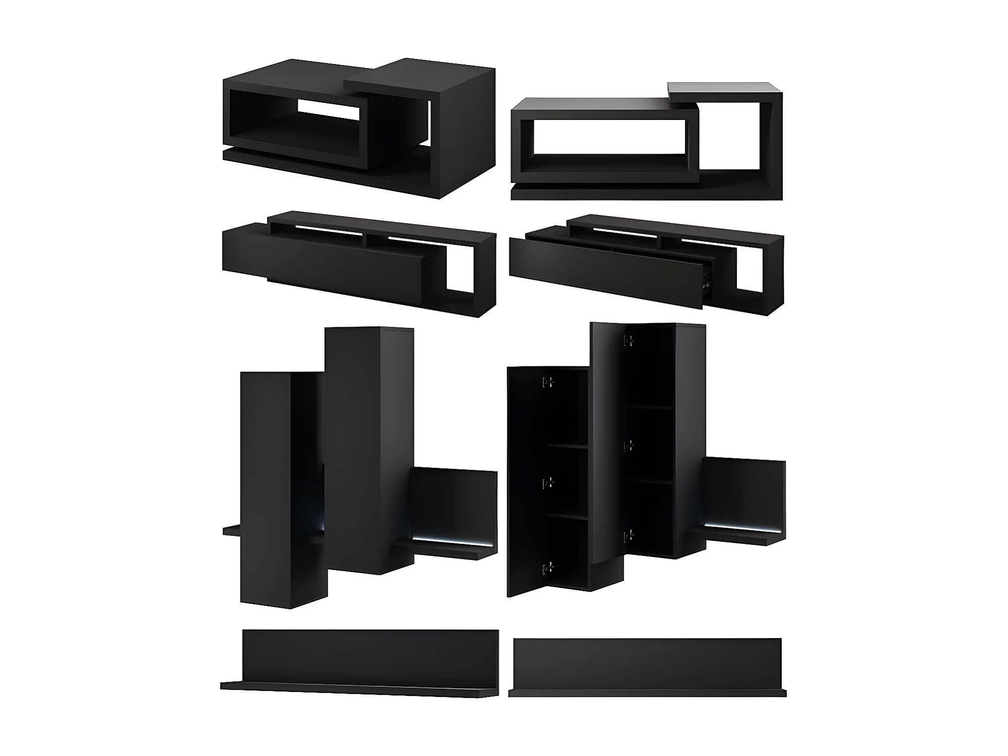 WOHNZIMMER-SET Bota schwarz matt eiche 641x60x142cm
