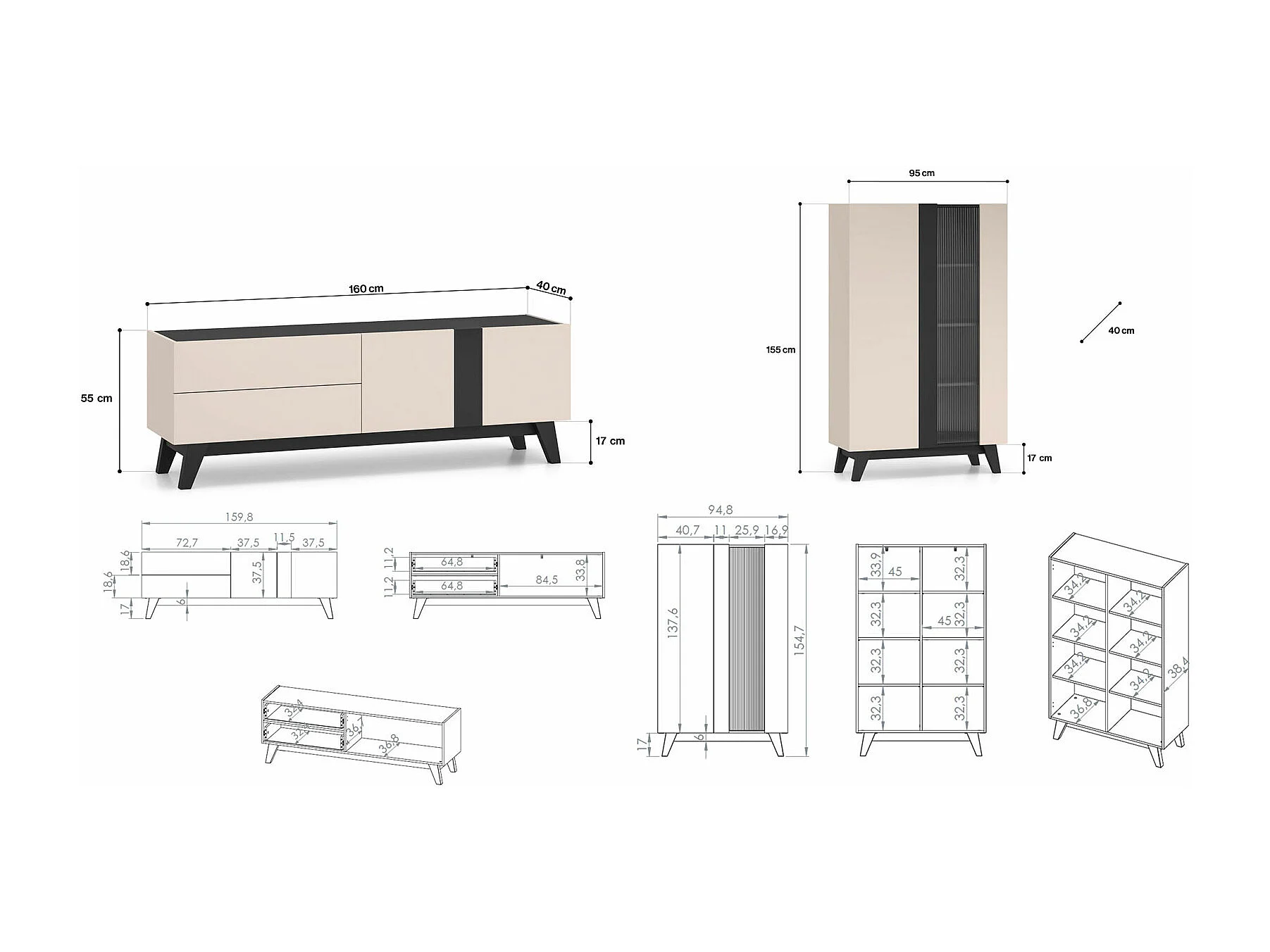 WOHNZIMMER-SET Freshion Kaschmir / Schwarz 2-teilig