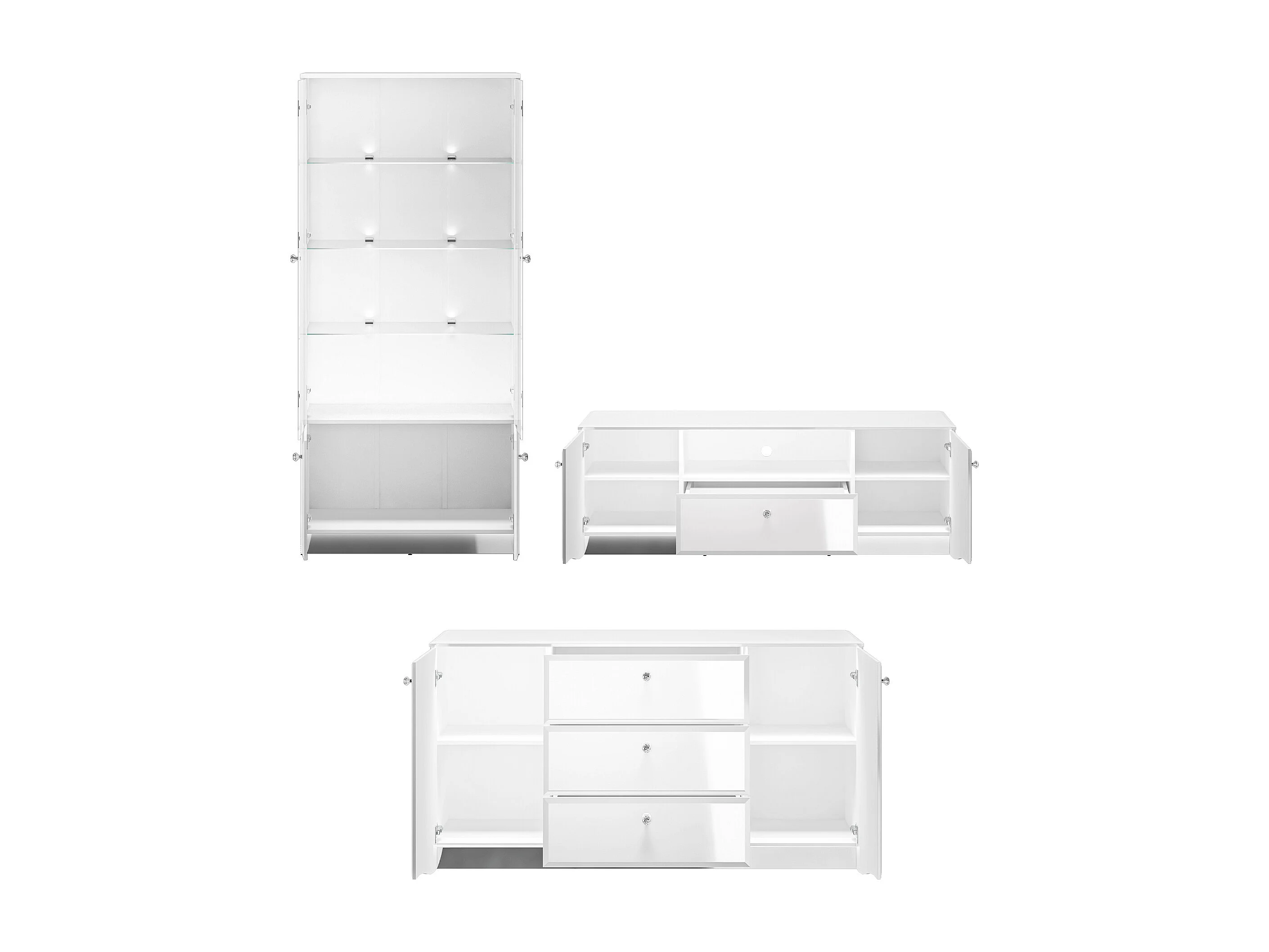 WOHNZIMMER-SET Glamour weiß / weiß hochglanz 3-teilig