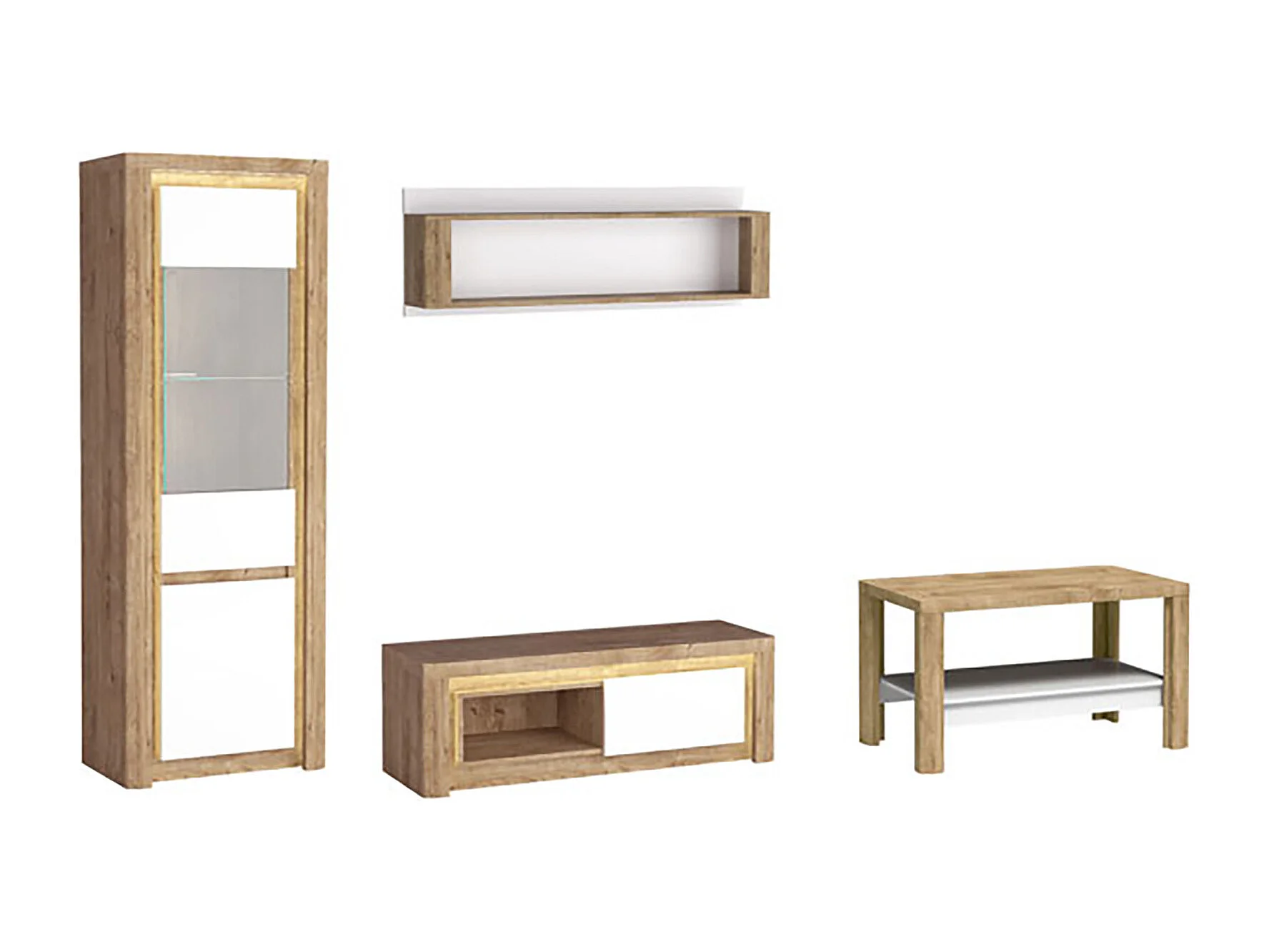 WOHNZIMMER-SET Livinio Ribbeck Eiche weiß Hochglanz 4-teilig