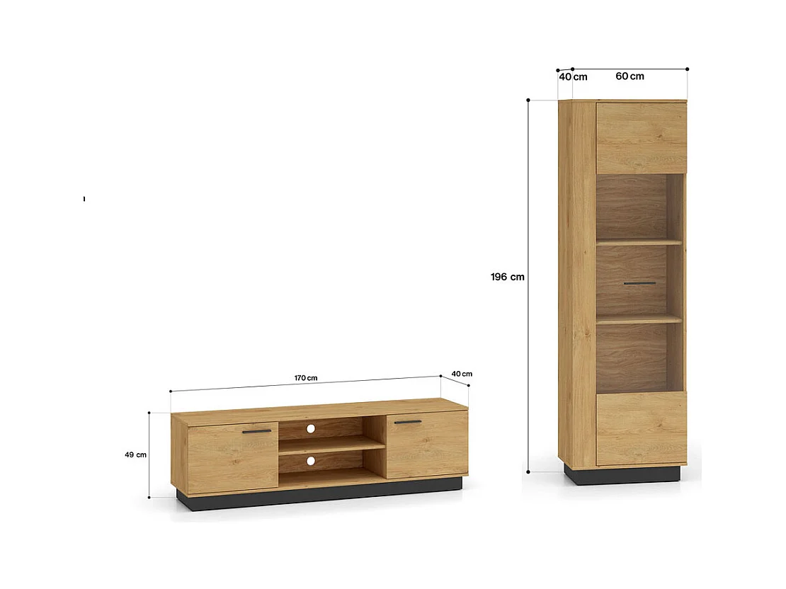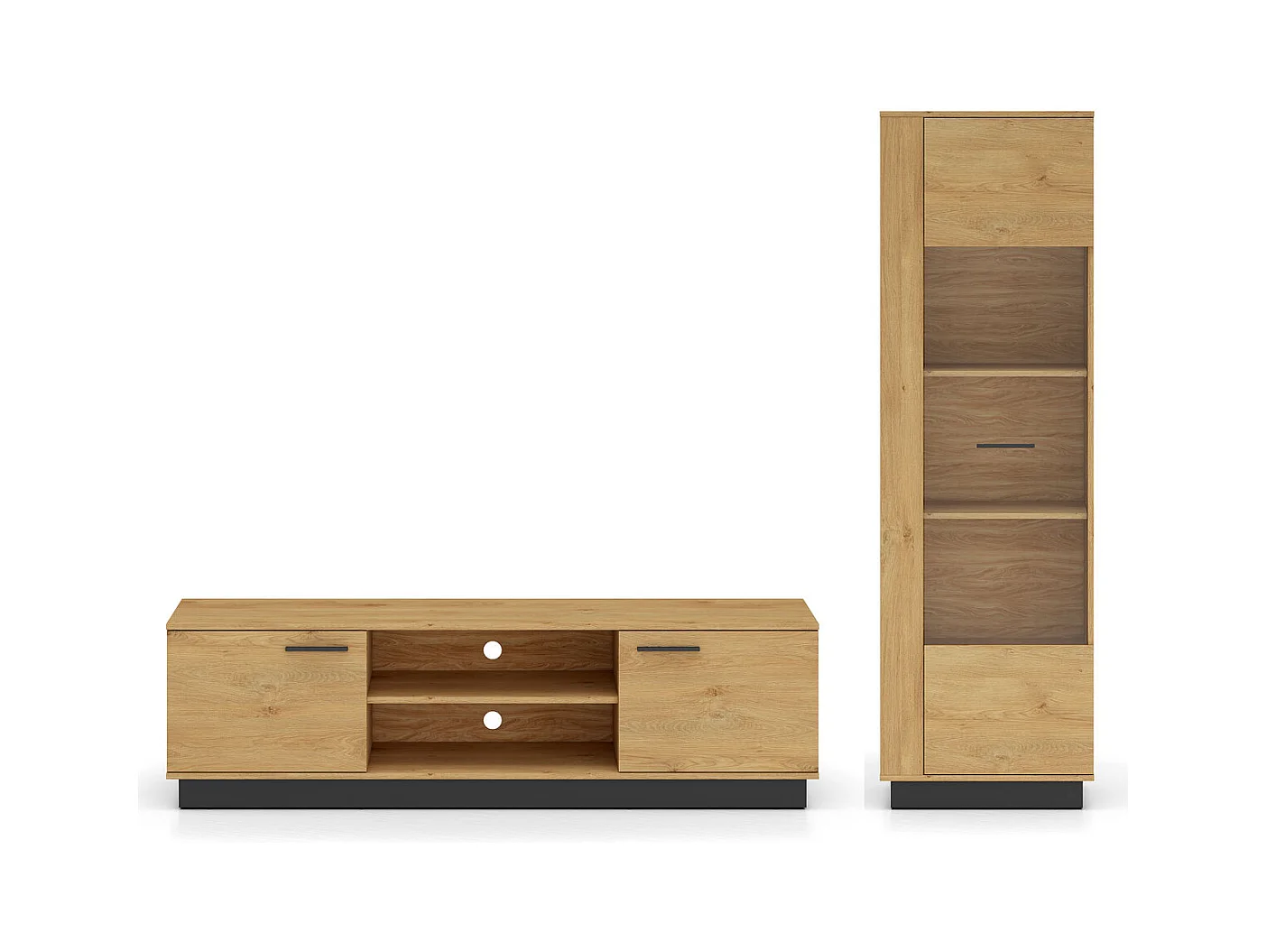 WOHNZIMMER-SET Modesto Eiche Style hell / schwarz 2-teilig