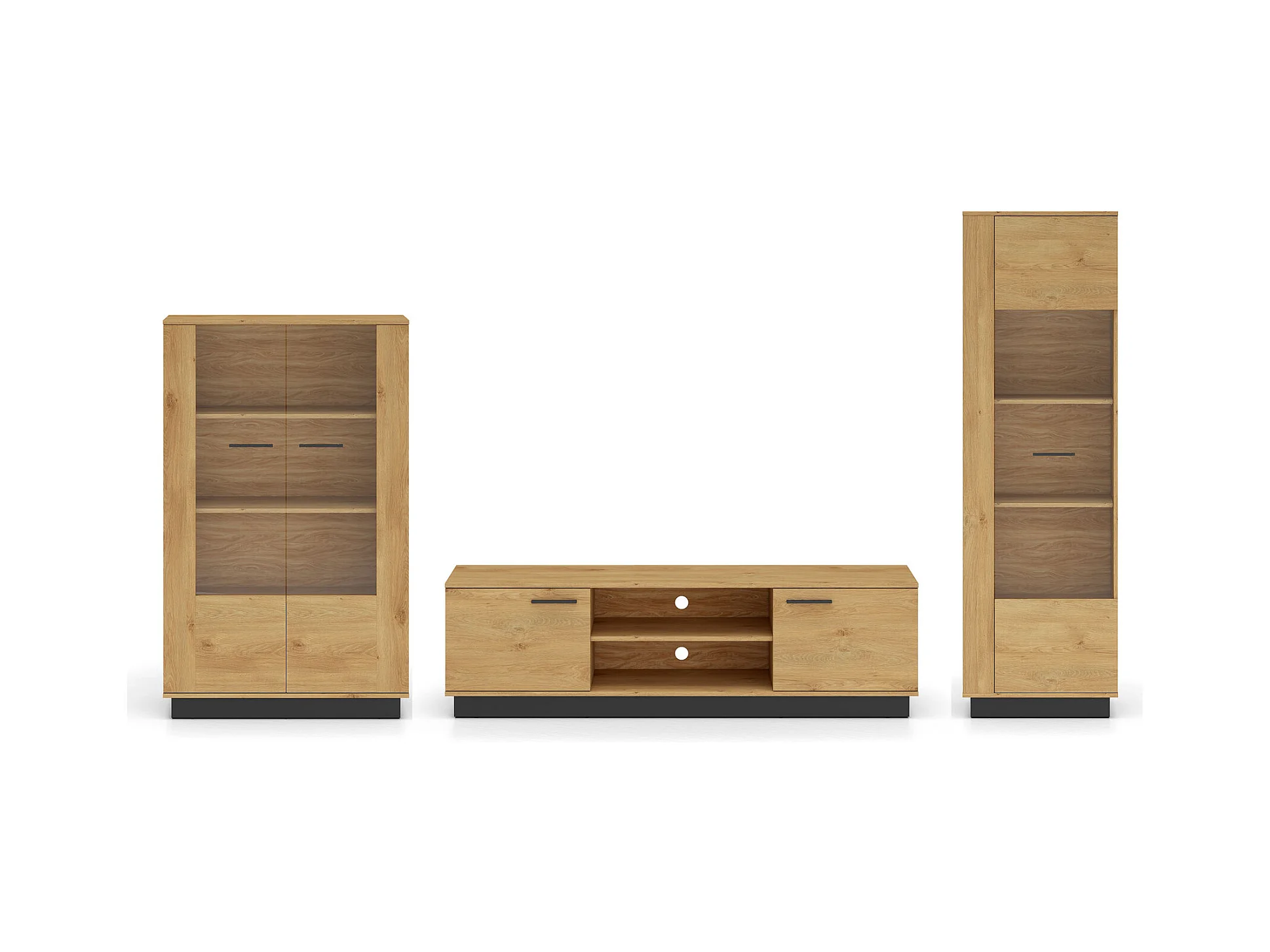 WOHNZIMMER-SET Modesto Eiche Style hell / schwarz 3-teilig
