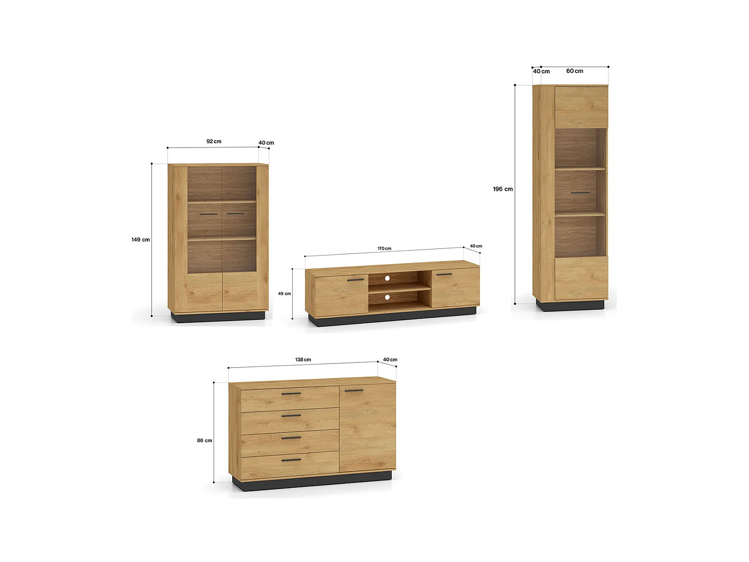 WOHNZIMMER-SET Modesto Eiche Style hell / schwarz 4-teilig
