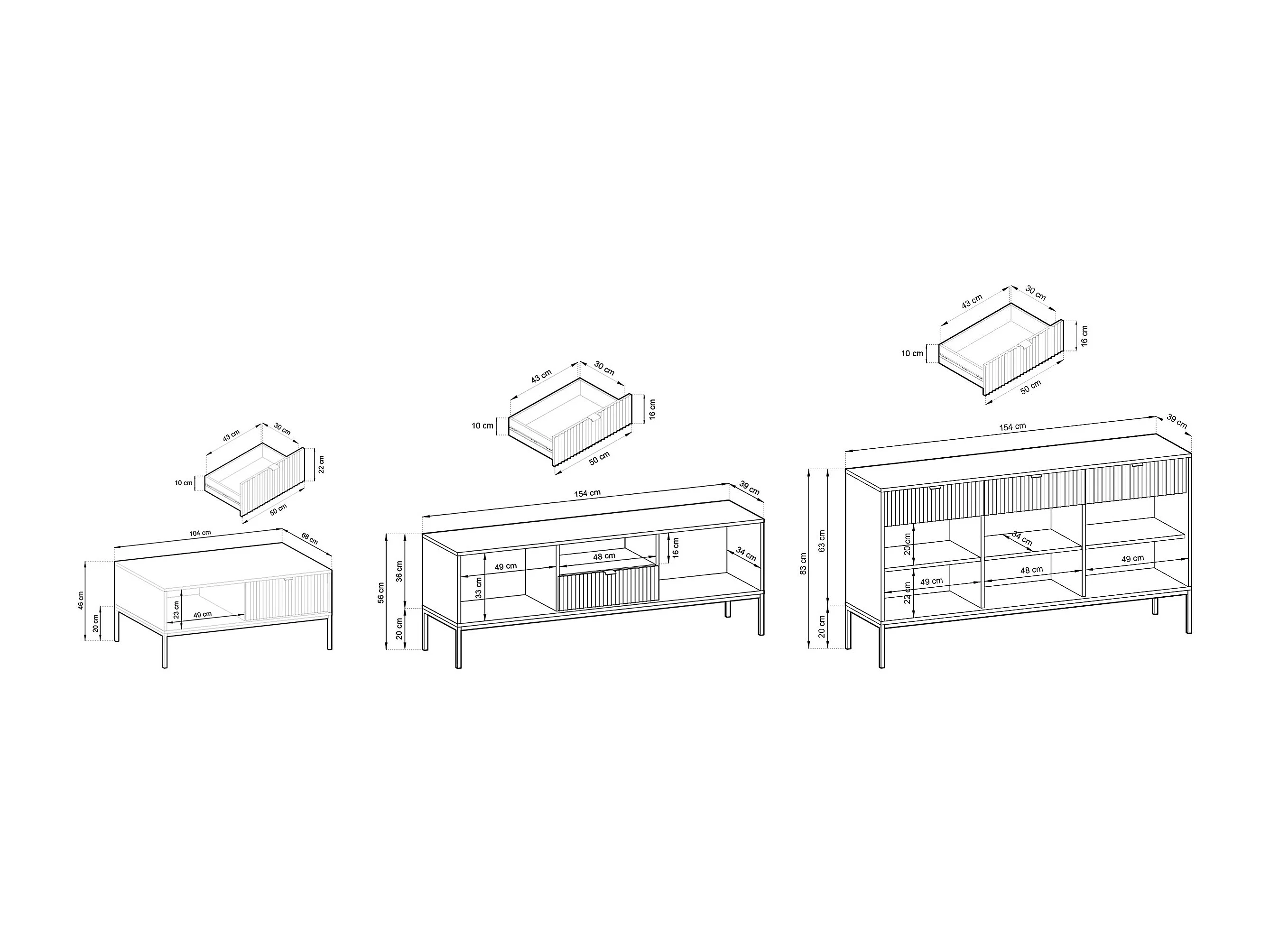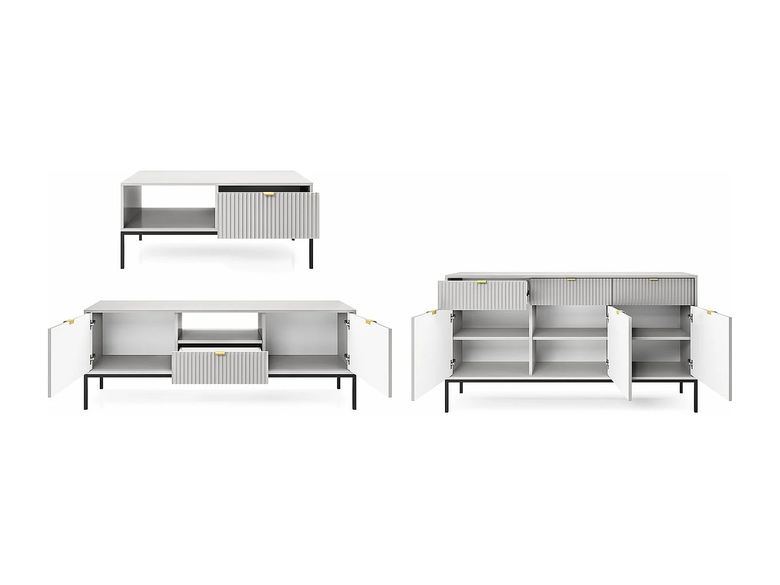 WOHNZIMMER-SET Nova Grau / Schwarz 3-teilig