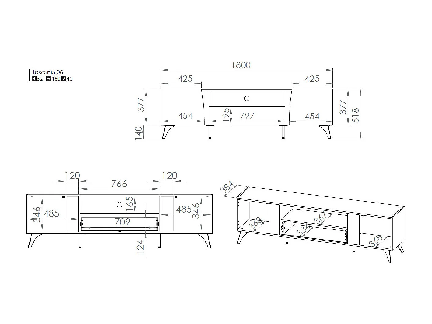 WOHNZIMMER-SET Toscania Eiche / Schwarz 2-teilig
