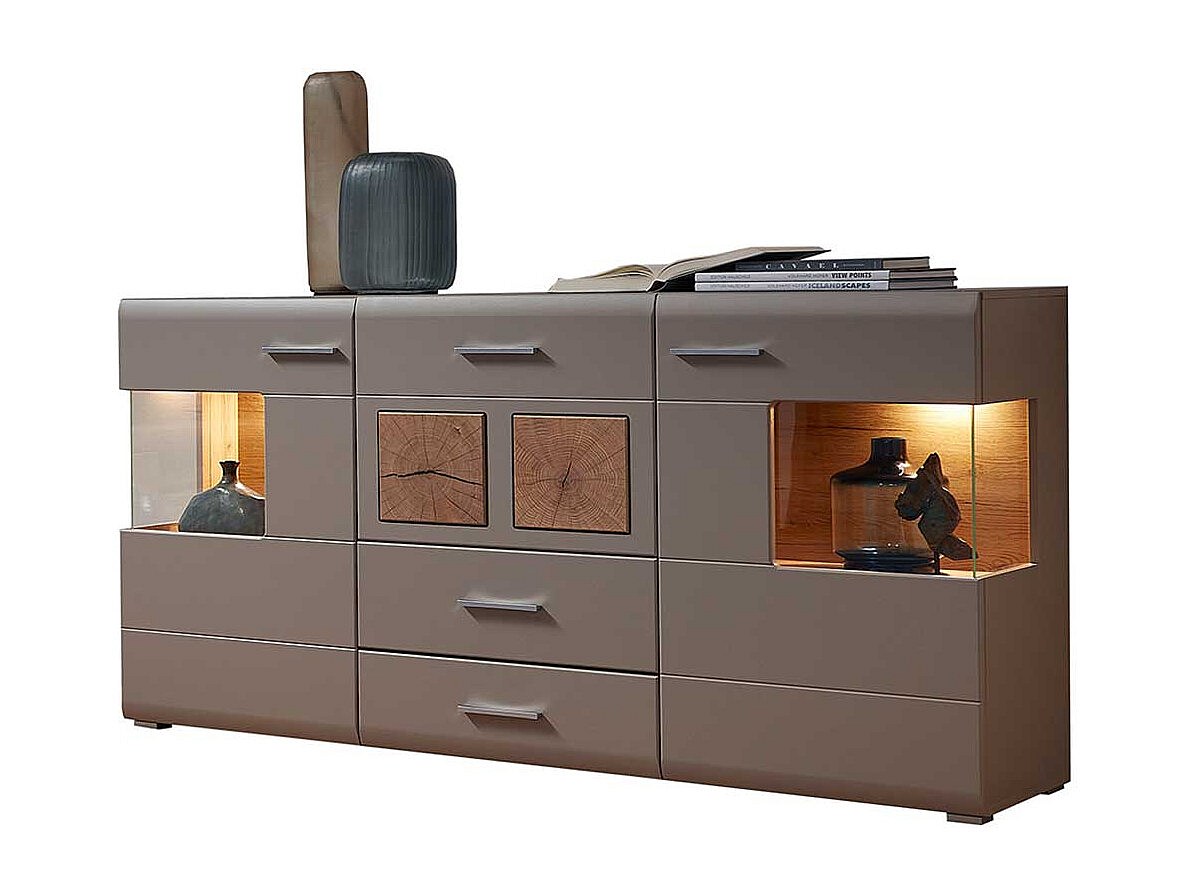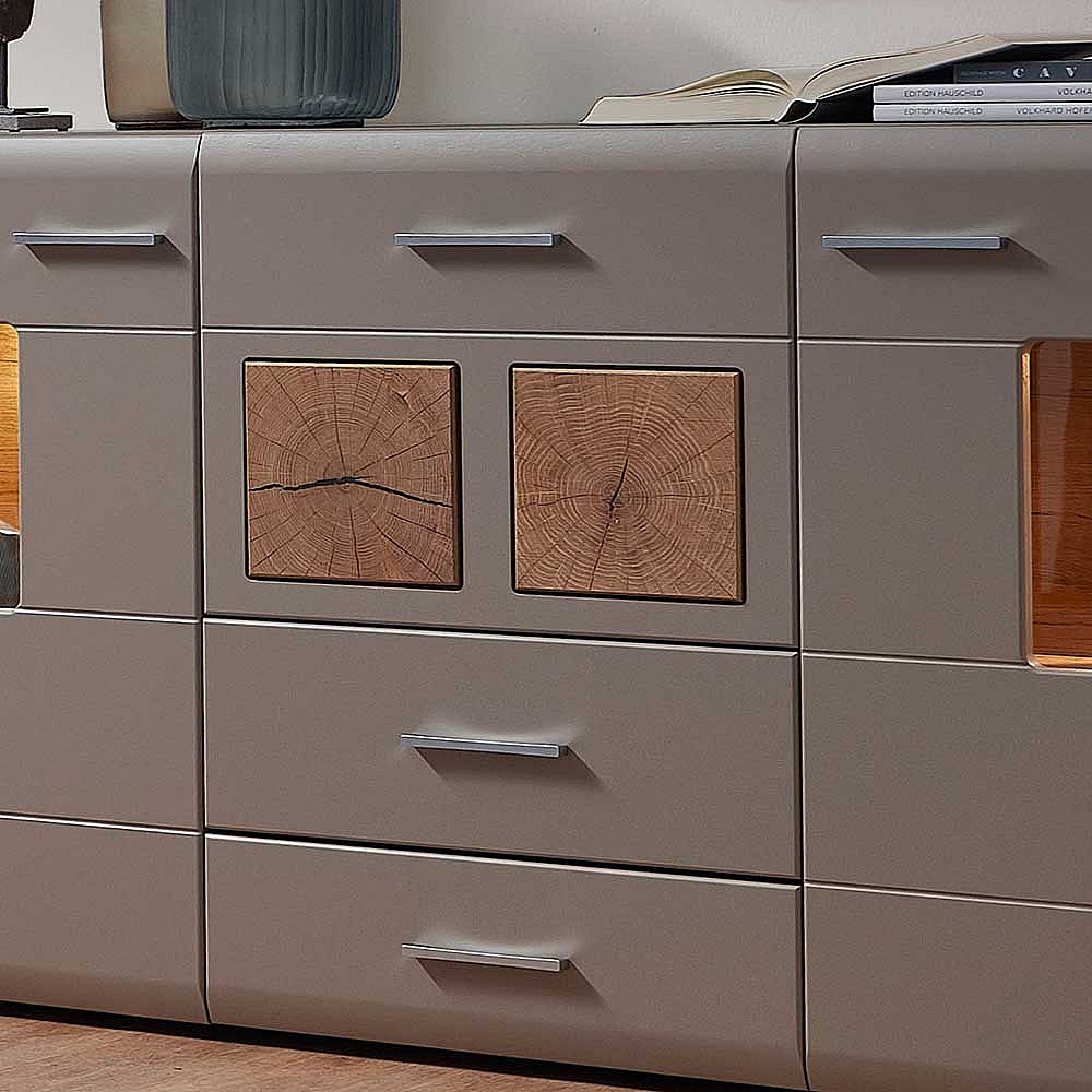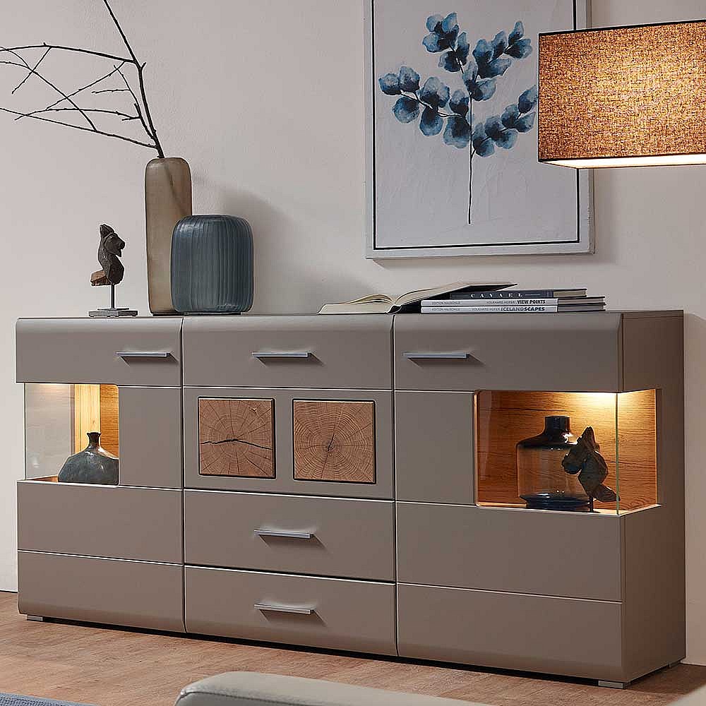 Wohnzimmer Sideboard in Grau und Eiche Optik LED Beleuchtung