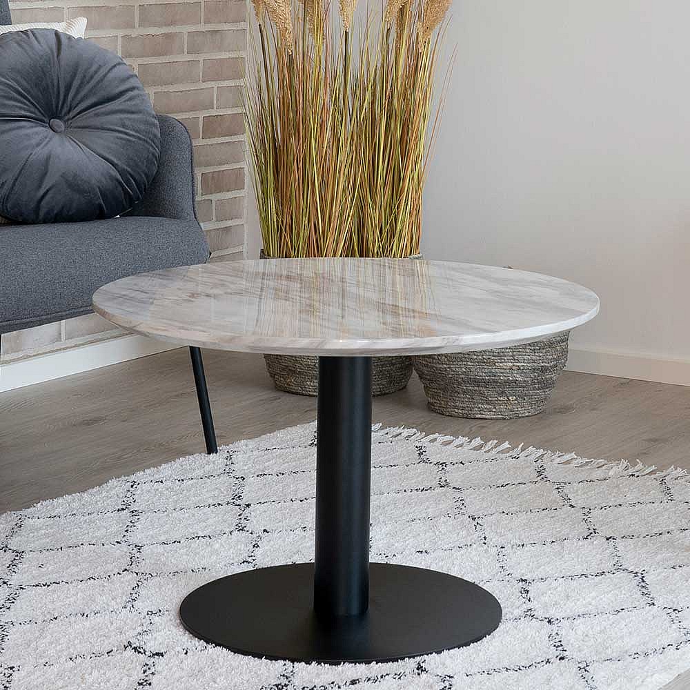 Wohnzimmer Tisch in Schwarz und Hellgrau marmoriert rund
