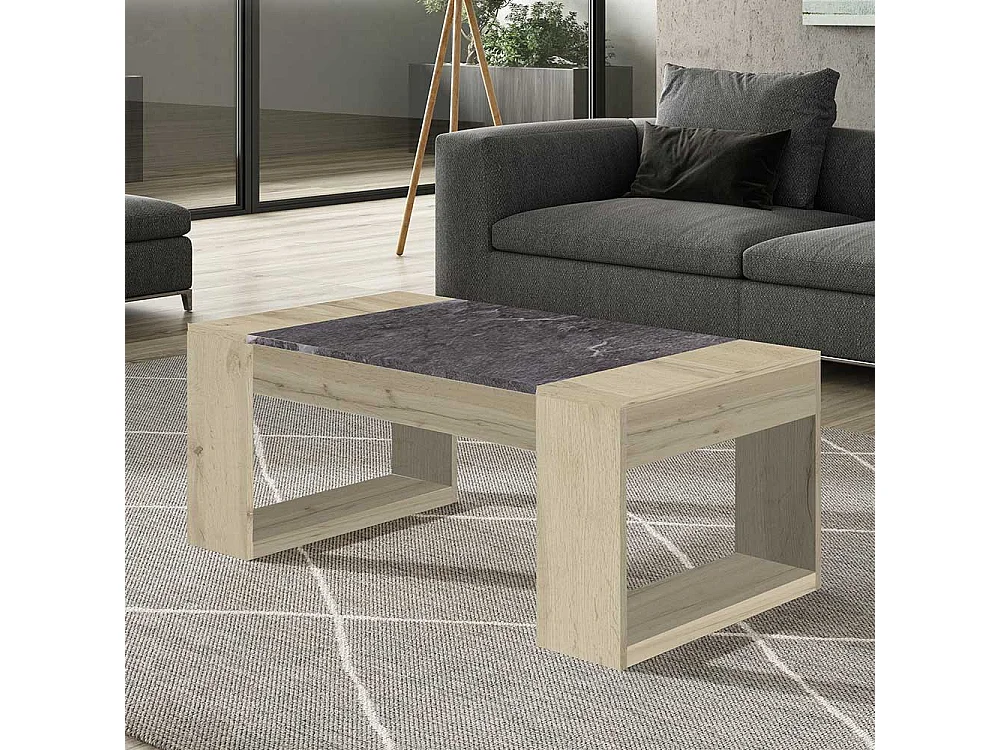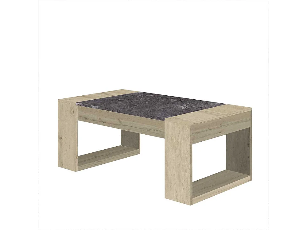 Wohnzimmer Tisch in Wildeichefarben und Dunkelgrau hochkappbarer Tischplatte