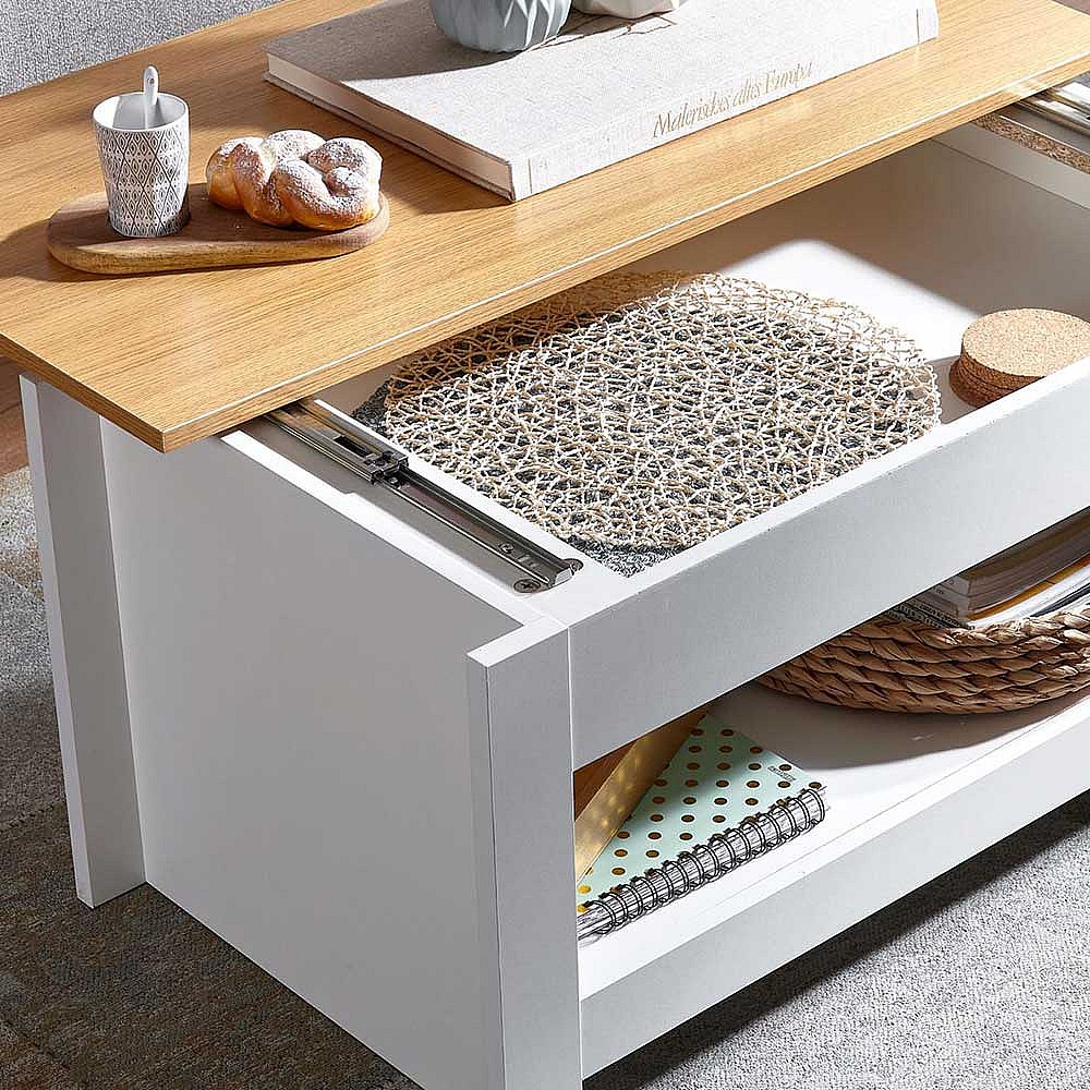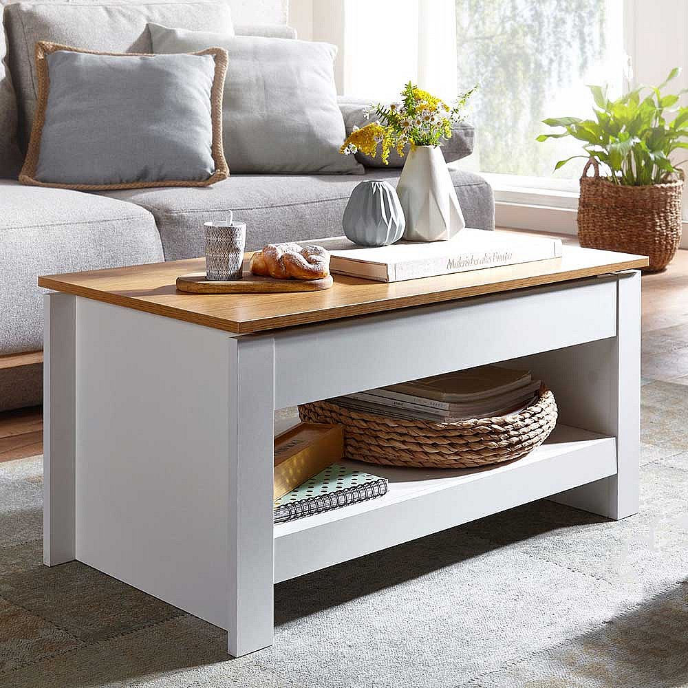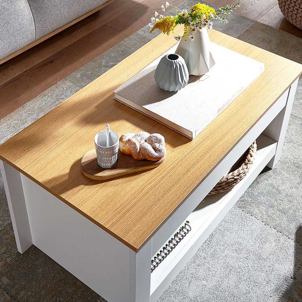 Wohnzimmer Tisch Landhaus mit Staufach Wei� und Eichefarben