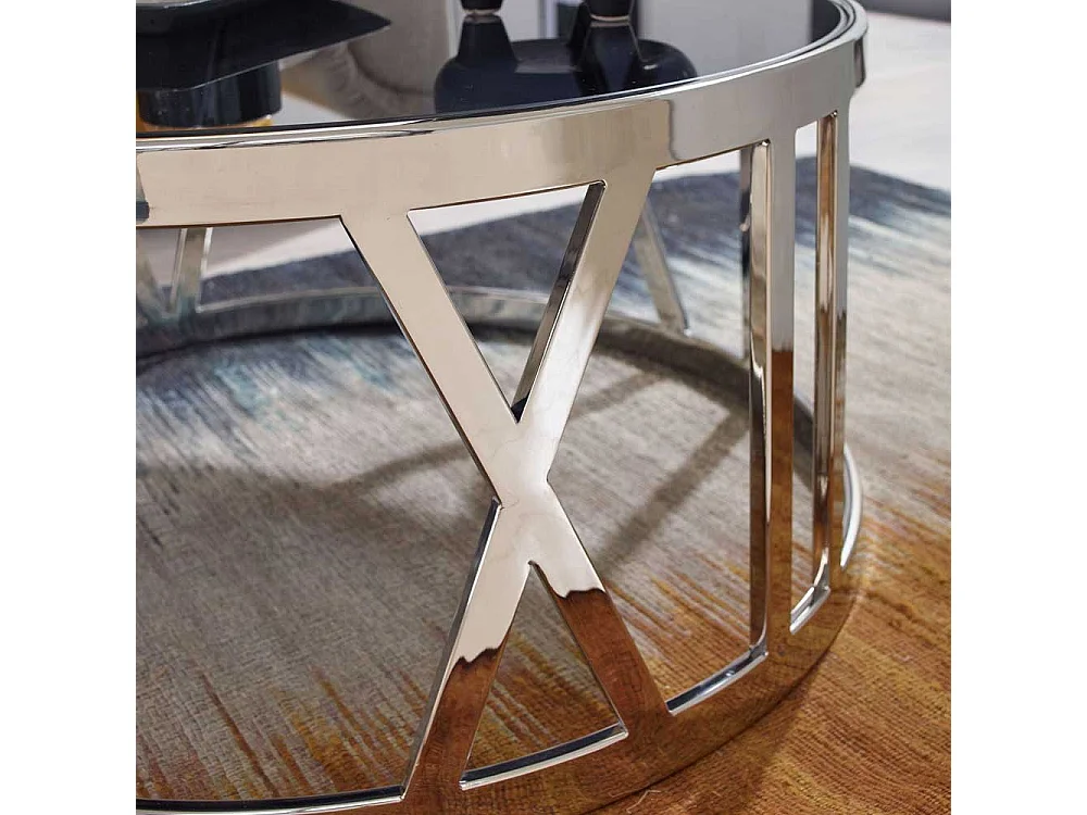 Wohnzimmer Tisch mit Glasplatte in Chromfarben Schwarz
