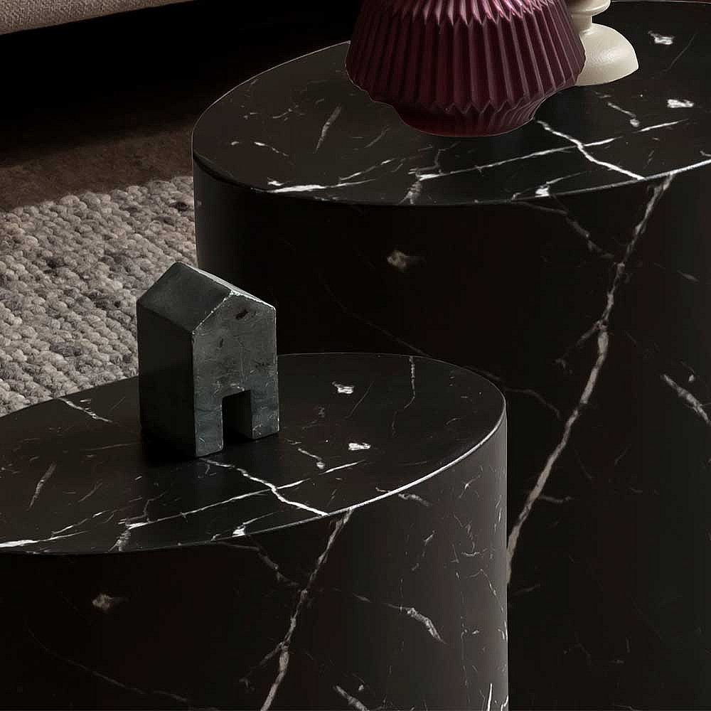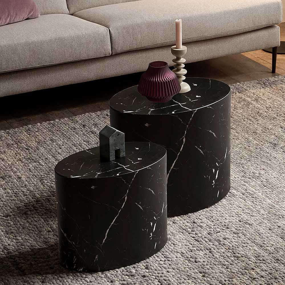 Wohnzimmer Tisch Set mit ovaler Tischplatte Schwarz (zweiteilig)