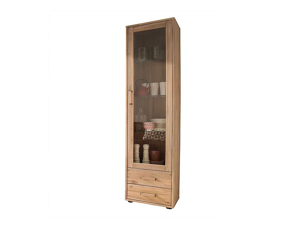 Wohnzimmer Vitrine in Eiche Bianco massiv einer Glastür