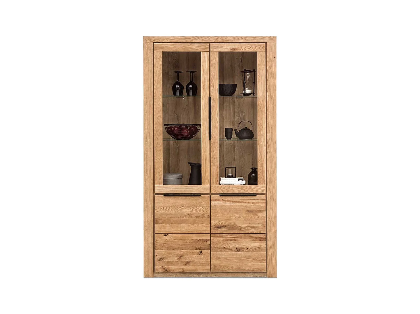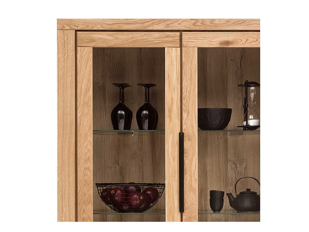 Wohnzimmer Vitrinenschrank in Eichefarben 2 Glastüren 2 Holztüren