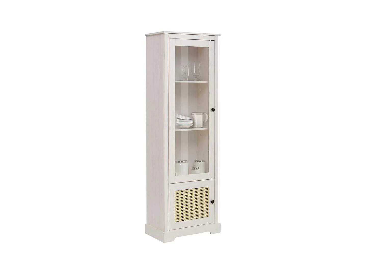 Wohnzimmer Vitrinenschrank in Weiß und Beige Glastür