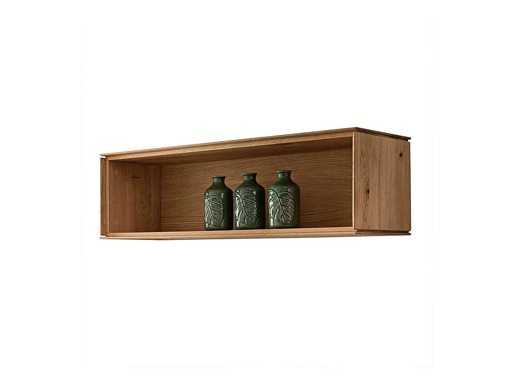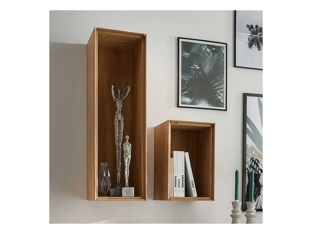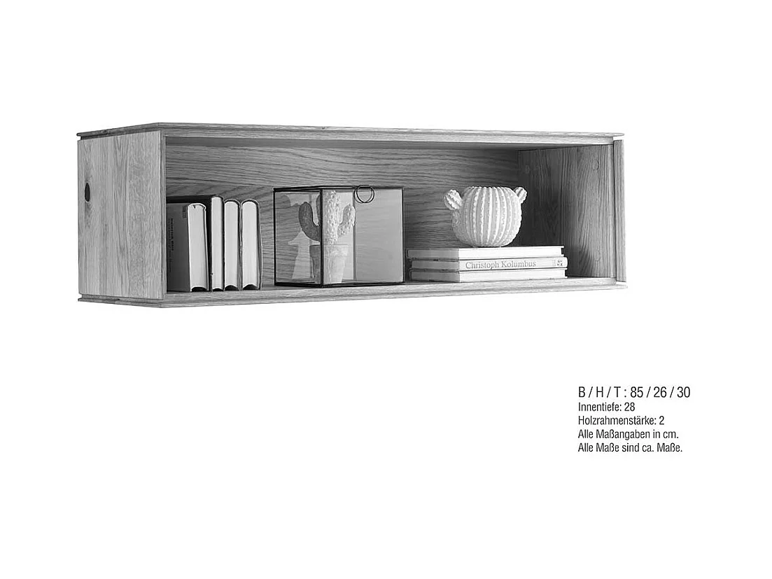 Wohnzimmer Wandhängeregal aus Wildeiche Massivholz mit Rückwand
