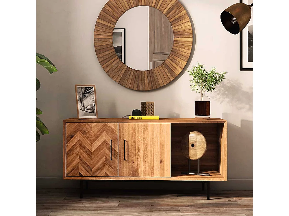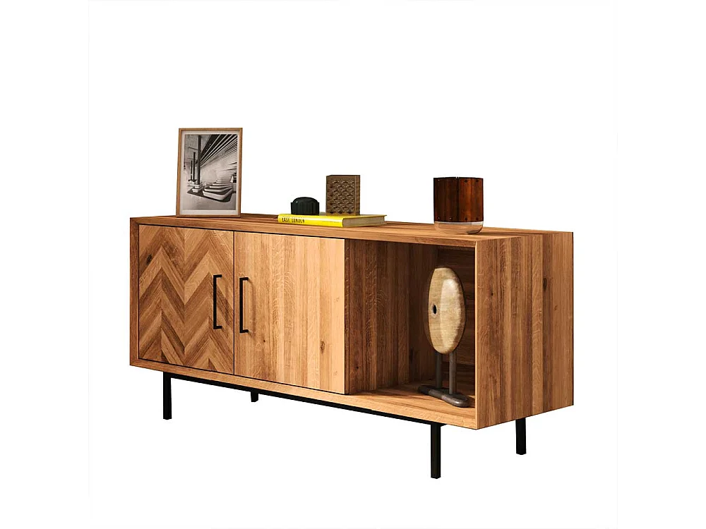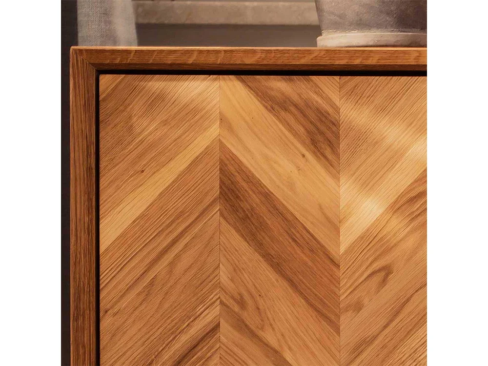 Wohnzimmerkommode massiv aus Wildeiche und Metall Drehtüren