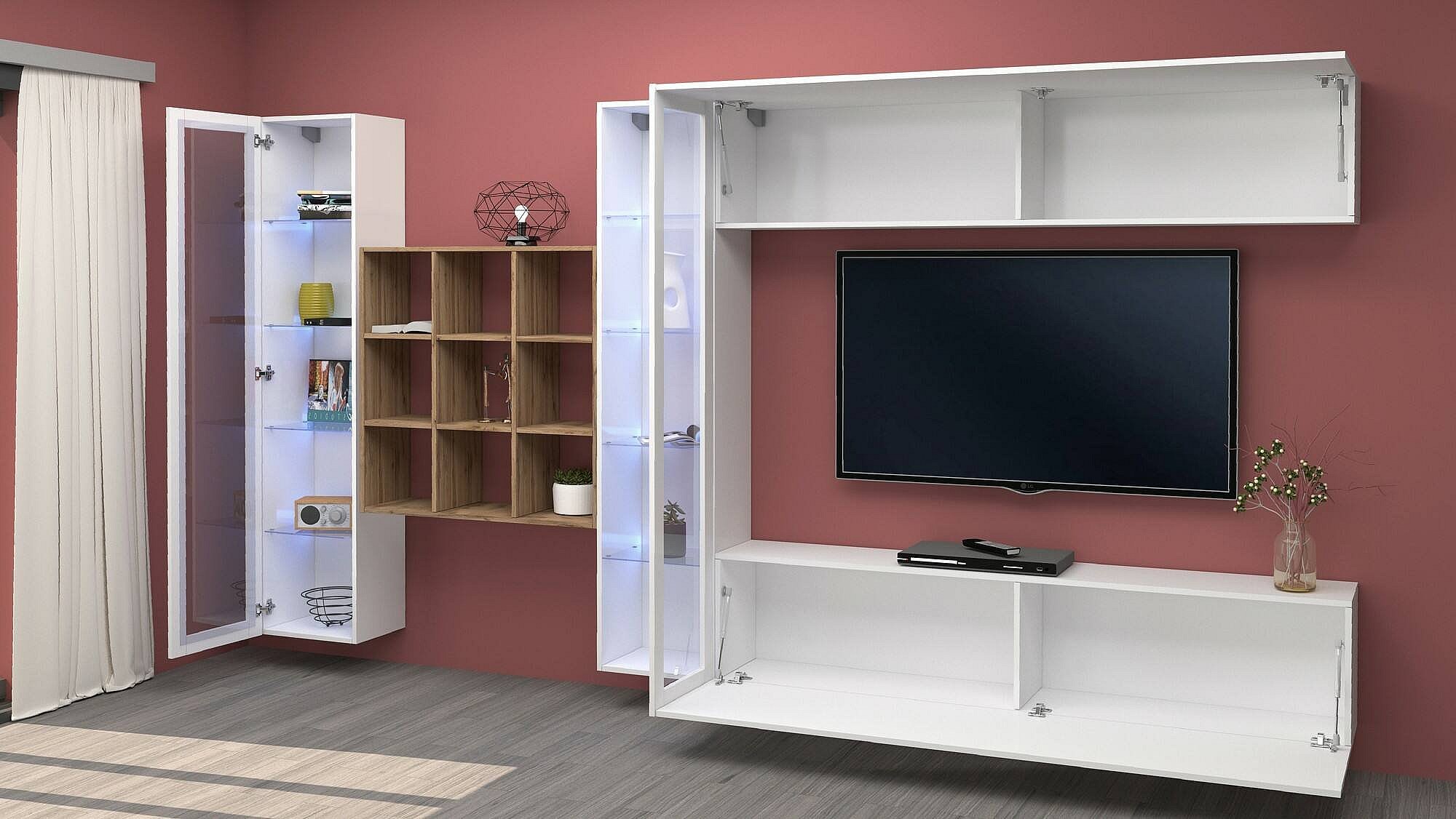 ABMESSUNGEN IN CM - TV-Schrank: 180x30h40 - Hängeschrank: 180x30h40 - Säulenschränke: 40x30h180 - Regal: 90x25h90