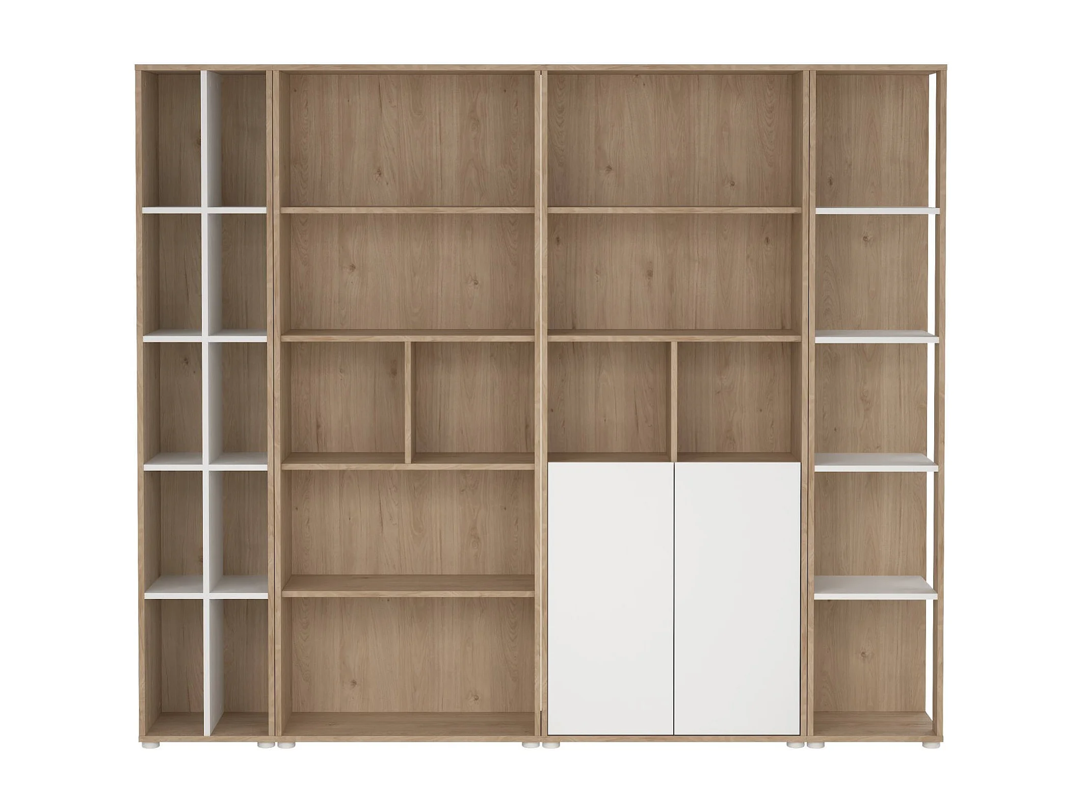 Wohnzimmermöbel Dtomeazz, Modulares Wohnzimmerset, Mehrzweck-Wohnzimmermöbel, Moderner TV-Schrank, 241x34 h205 cm, Eiche und Weiß