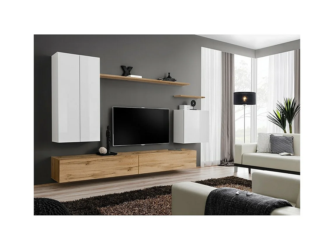 Wohnzimmermöbel-Set aus der Kollektion SWITCH II, Design in Weiß und Wotan-Eiche.