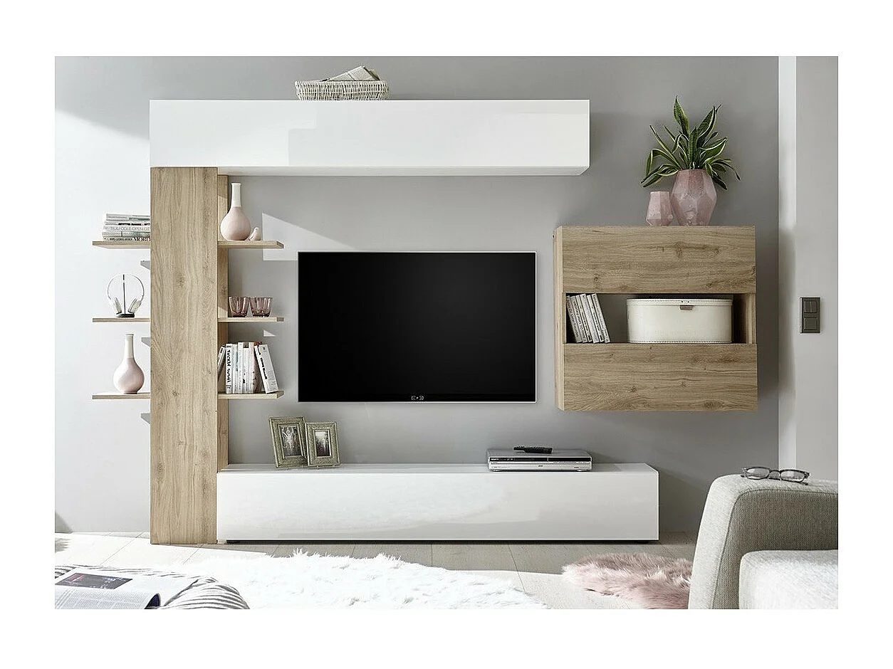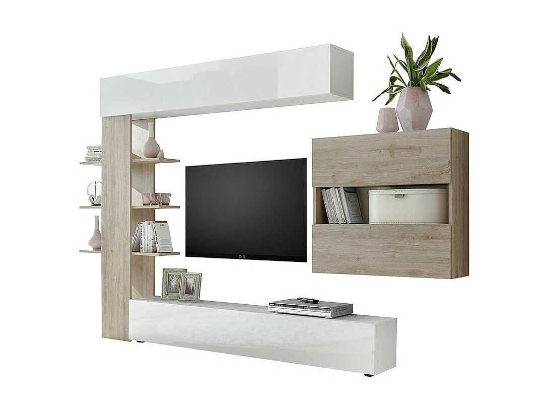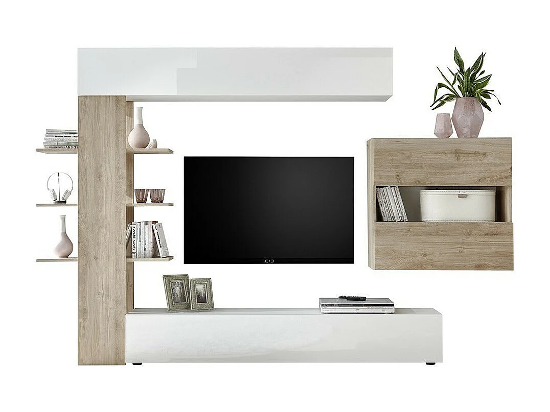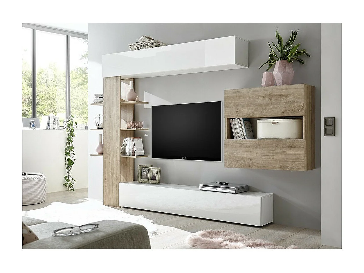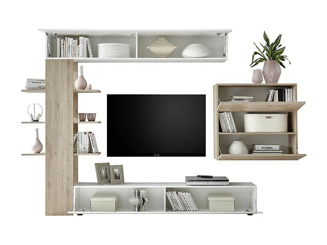 Wohnzimmermöbel-Set mit Stauraum, Kollektion VASCO, weiß lackiert/hell Eiche