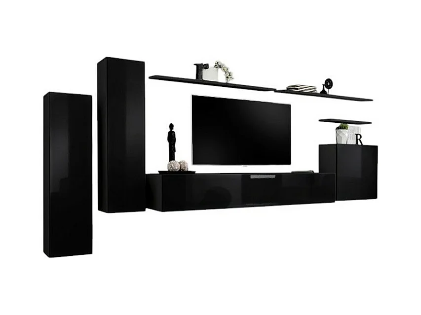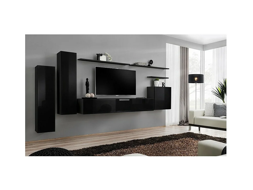 Wohnzimmermöbel-Set SWITCH I – Modernes Design – Hochglanz Schwarz – Fernsehmöbel und hängende Aufbewahrungen