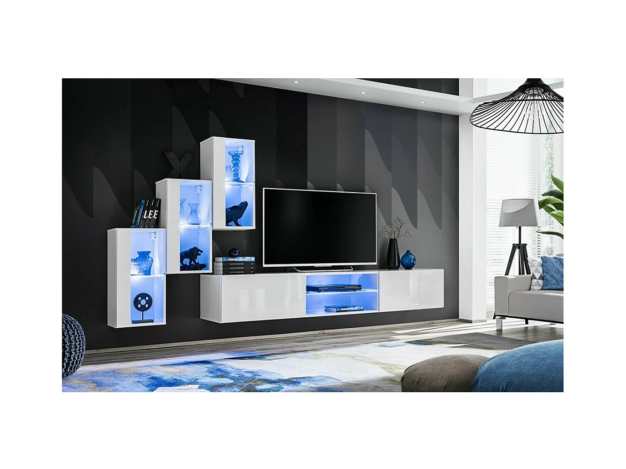 Wohnzimmermöbel-Set SWITCH XXII Design, in glänzendem Weiß.