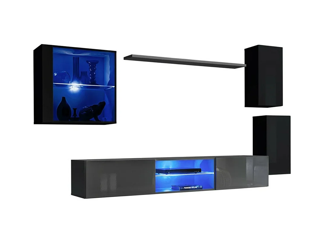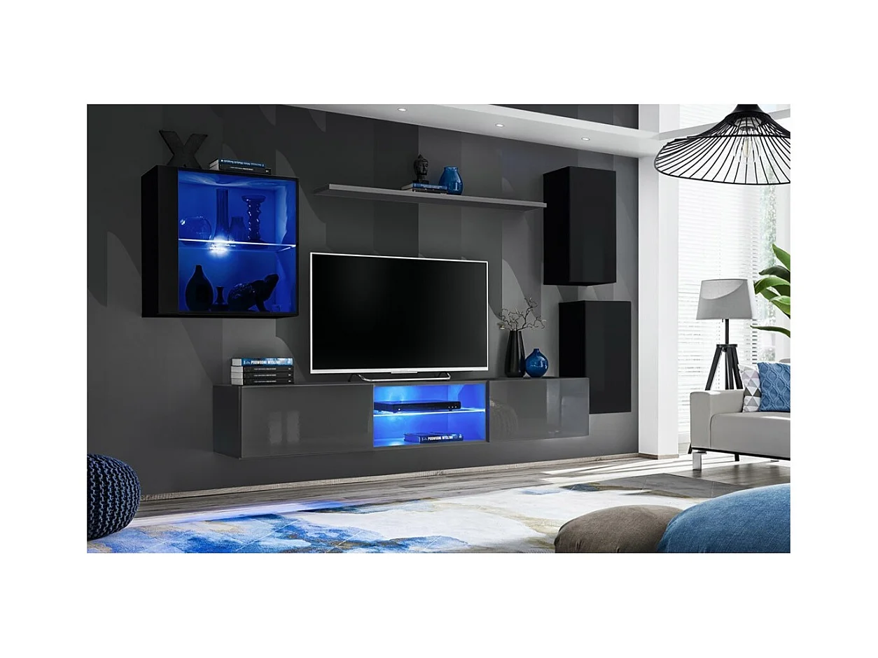 Möbelset für Wohnzimmer SWITCH XXIII – LED – Schwarz und Grau – Hängendes Design