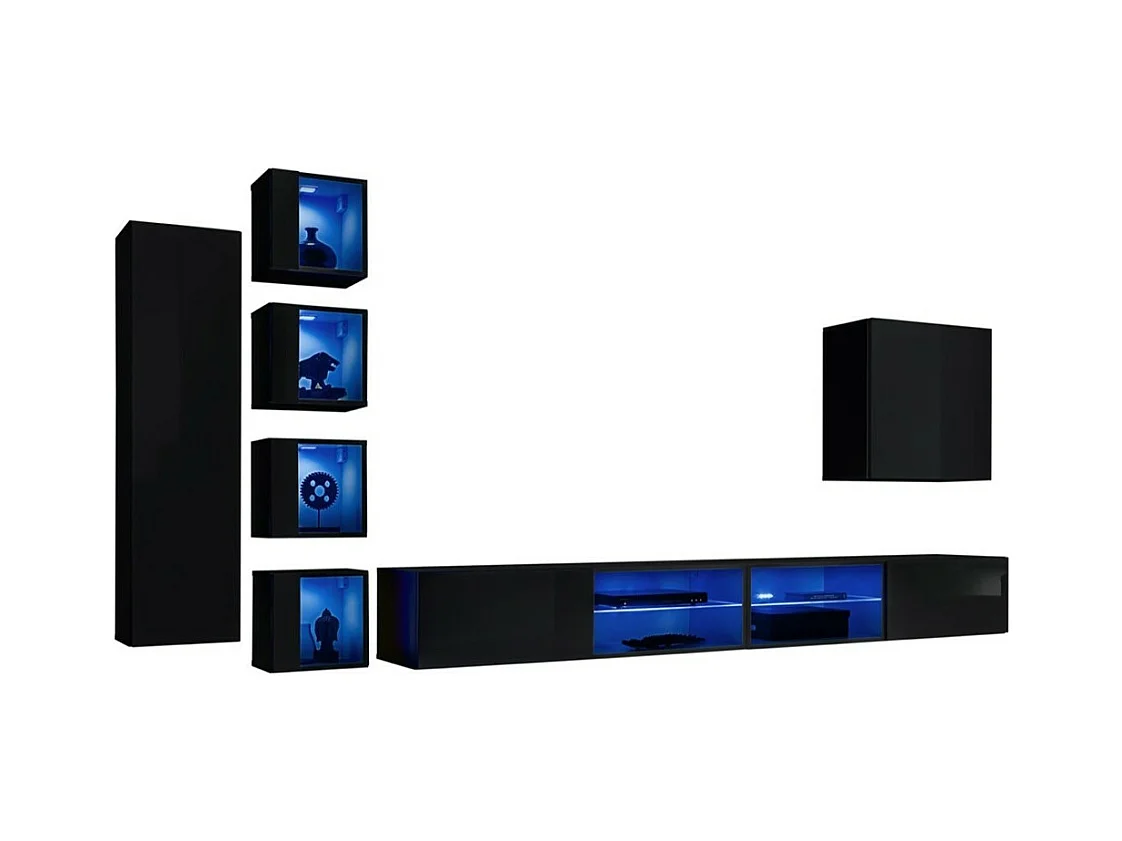 Wohnzimmermöbel-Set SWITCH XXVI, Design in glänzendem Schwarz.
