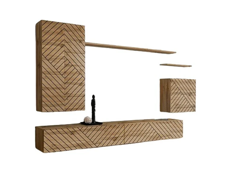 Wohnzimmermöbelset SWITCH II Design, Farbe Wotan-Eiche. Fronten mit gefräster Eichenoptik.